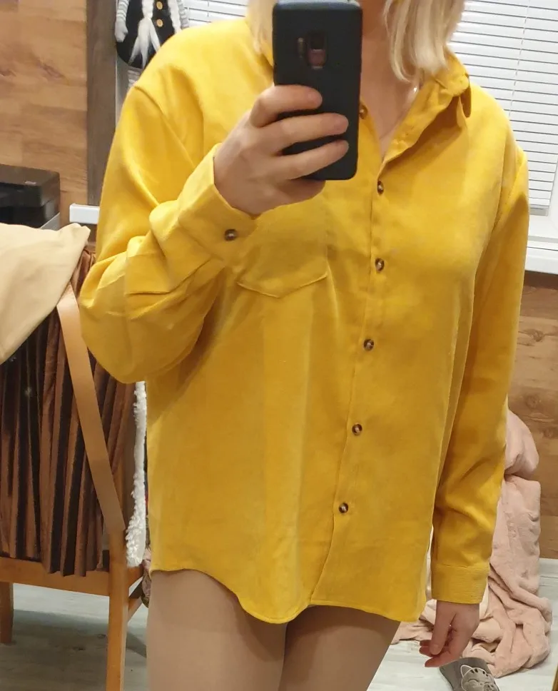 Отличная рубашка, пришла на удивление быстро(за 10 дней), ткань приятная на ощупь, плотная. Ни одной торчащей нитки не заметила, запаха нет, пуговицы пришиты крепко. В общем, качество на высоте. Цвет красивый, нежно-горчичный На мой рост 163 и вес 54 рукава в самый раз, сидит свободно, как и хотелось Очень довольна заказом, покупайте, не пожалеете)