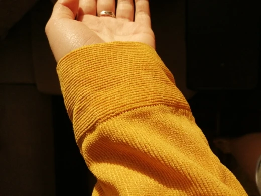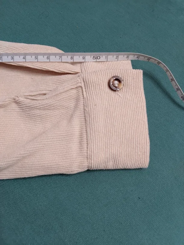 Заказывала на параметры ОГ 85, ОТ 63, ОБ 92 размер М с расчетом того, что можно ушить. Но ушивать не пришлось. Хорошо, что заказала такой размер. Правда я перешила пуговицы (вместо коричневых теперь серые). Хорошая подделка вельвета. Ткань не такая теплая, конечно, но выглядит очень хорошо.