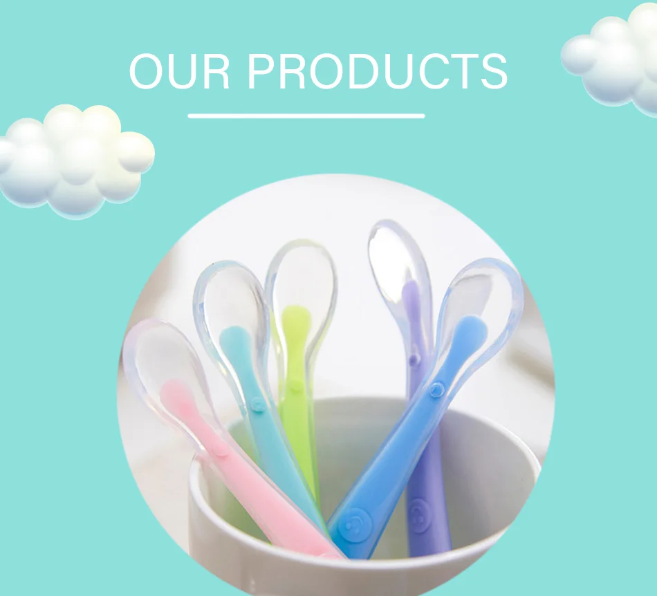 Детская силиконовая Мягкая ложка, безопасные ложки с датчиком темпе...