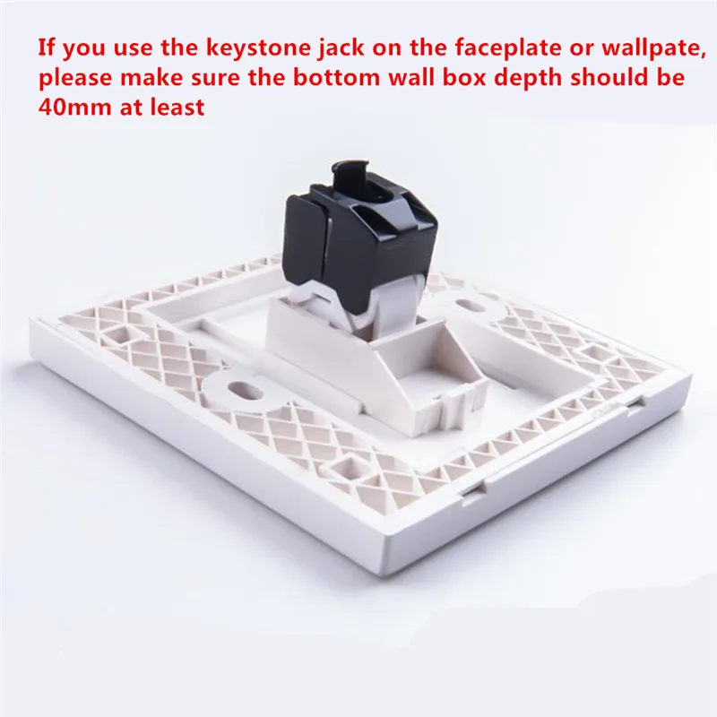 Примечание: Если вы используете разъем keystone на лицевой панели или стенке, пожалуйста, убедитесь, что глубина нижней стенки коробки должна быть не менее 40 мм.