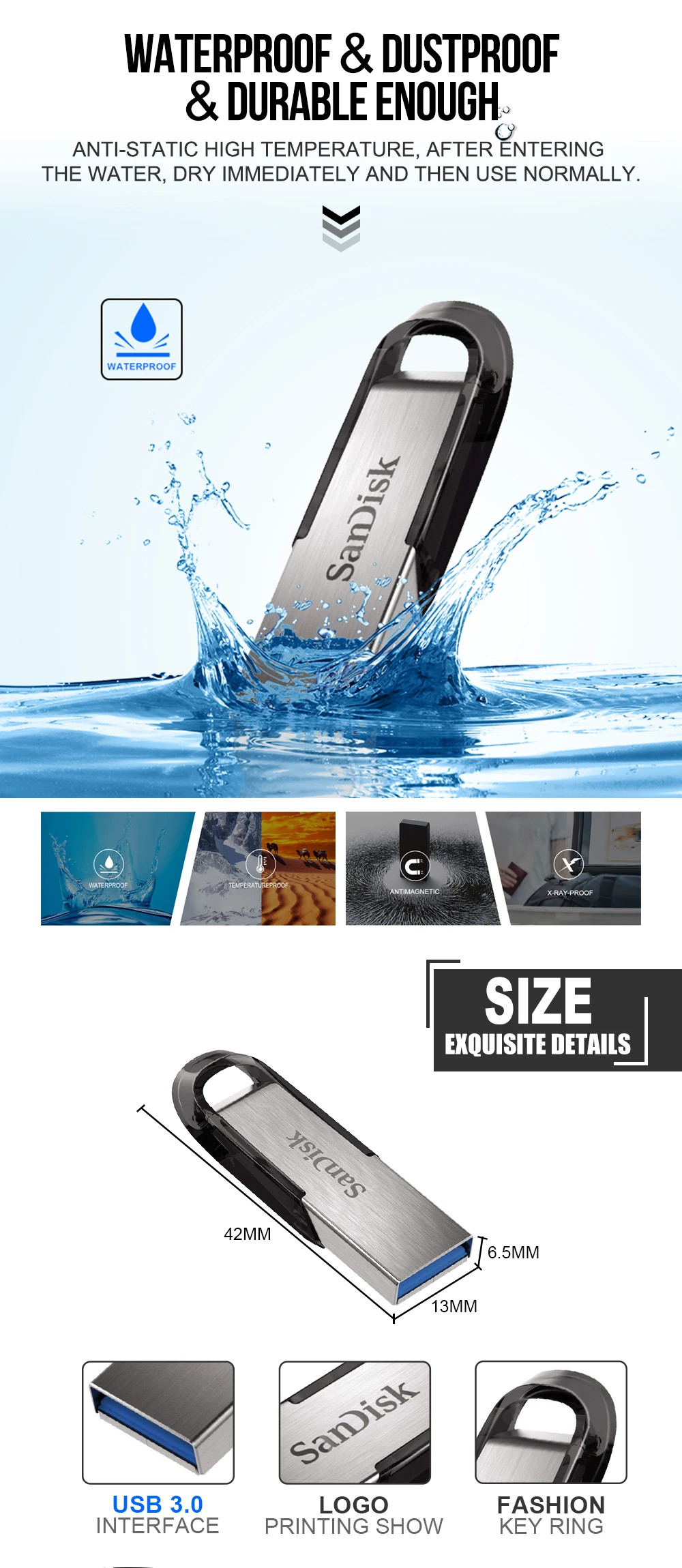 Флеш-диск USB 3.0 SanDisk, компактная флешка на 128 Гб, 64 Гб, 32 Гб, 16 Гб, карта хранения памяти, флешка для устройств, прямые поставки