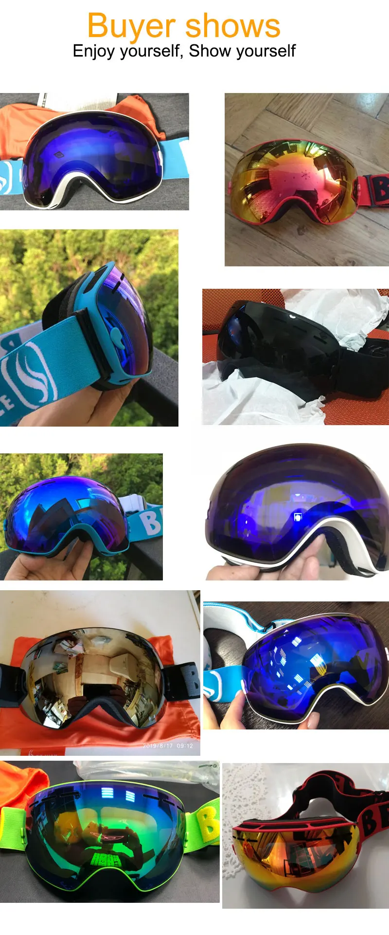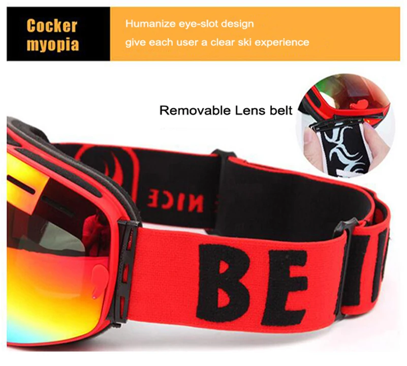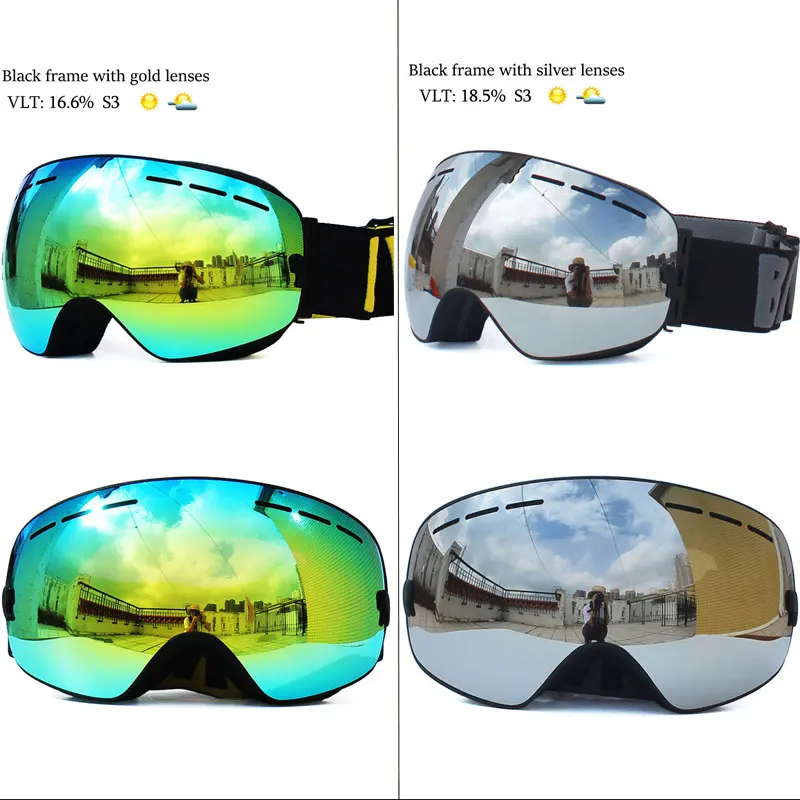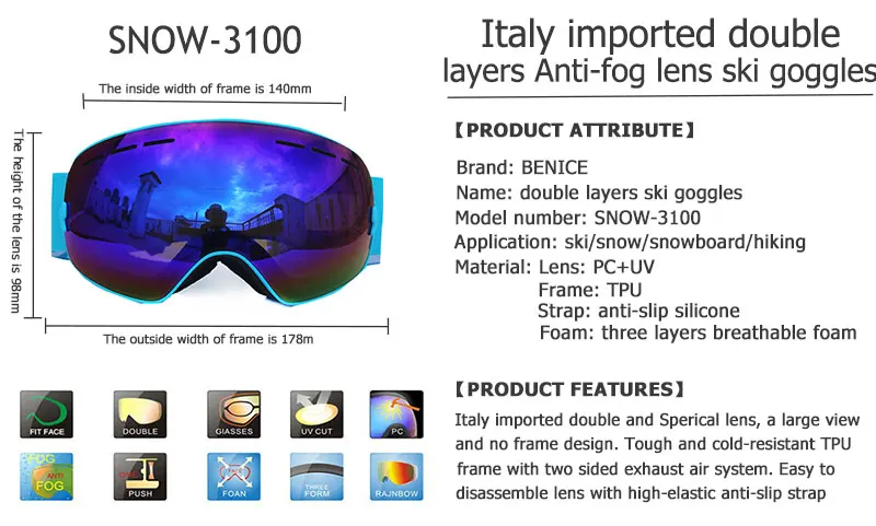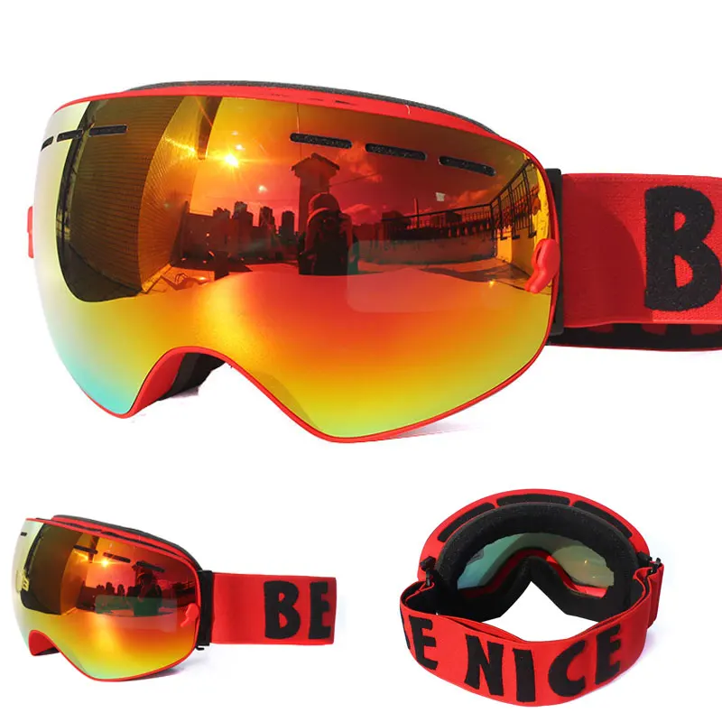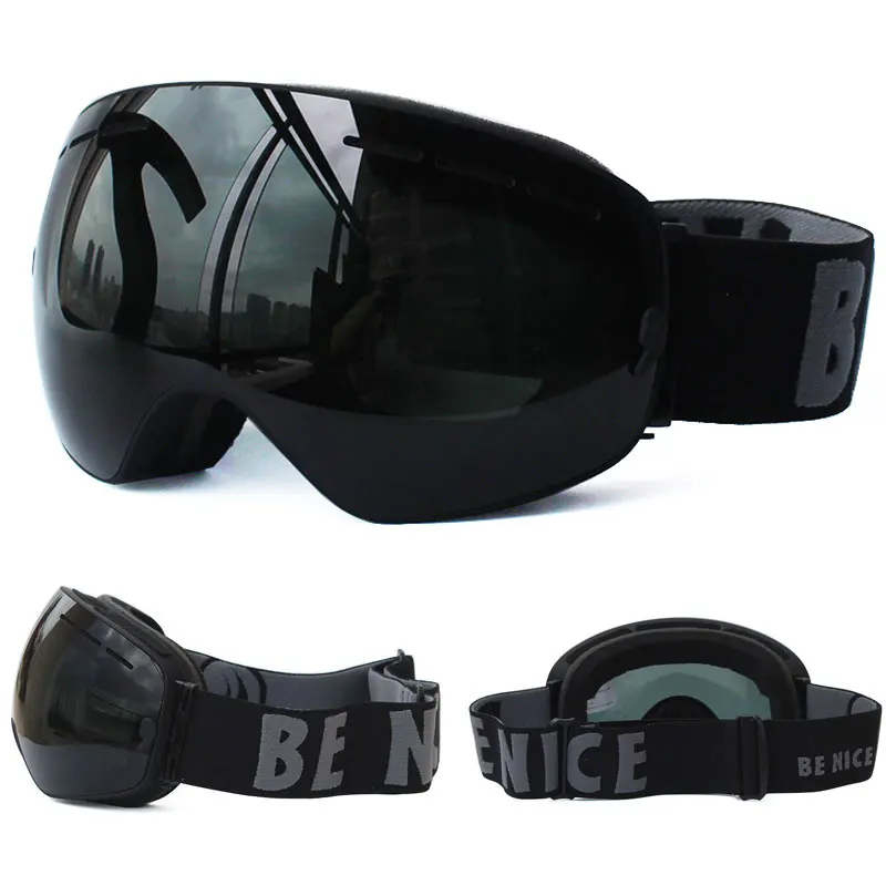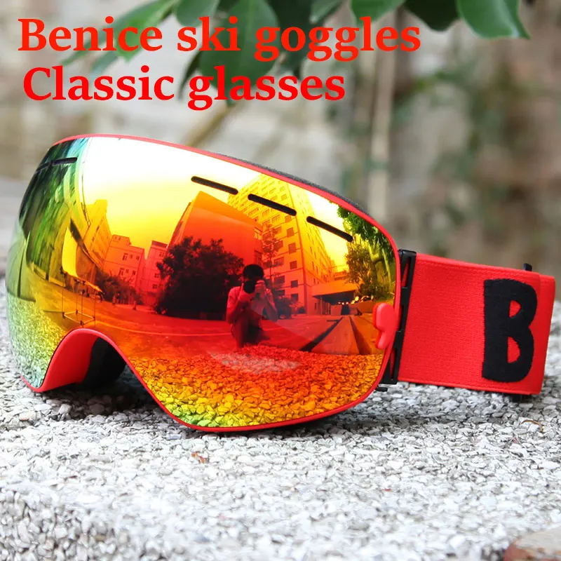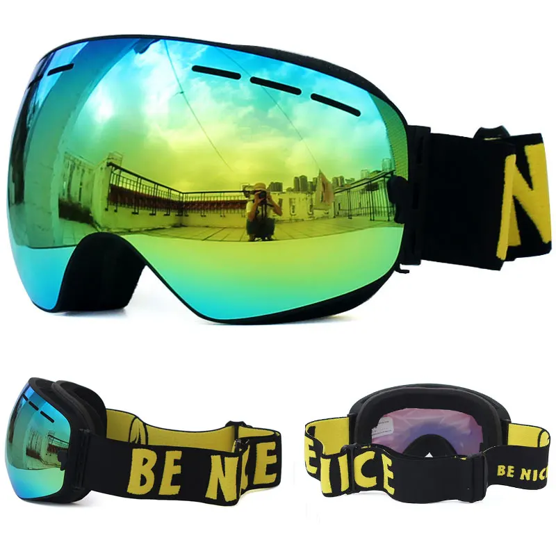 Мужские лыжные очки Benice, двухслойные незапотевающие очки с УФ-защитой, большие сферические очки для катания на лыжах, сноуборде, очки для снега, набор 3100, чехол
