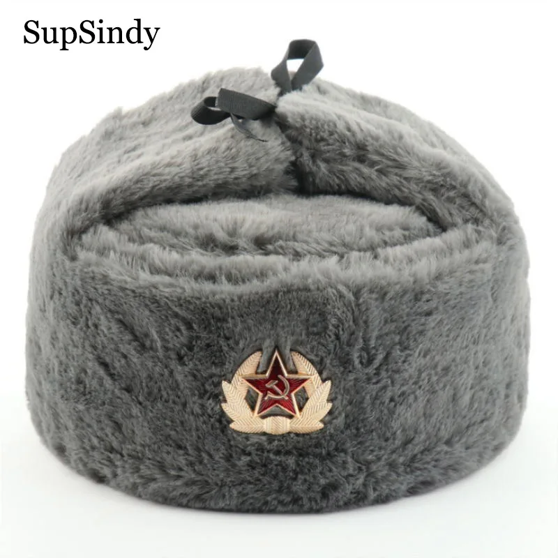 SupSindy Советский значок, ушанка, мужская и женская шапка-бомбер CCCP, армейский пилот, охотничья шапка, зимняя шапка-ушанка из искусственного кроличьего меха, зимние шапки