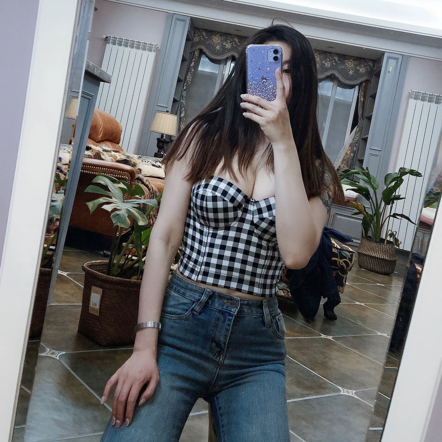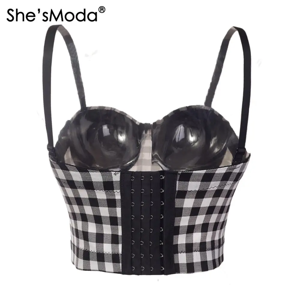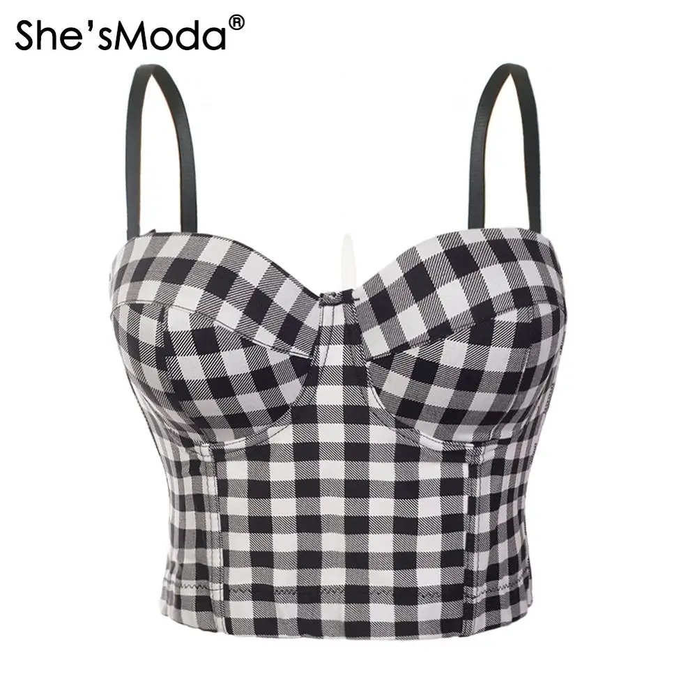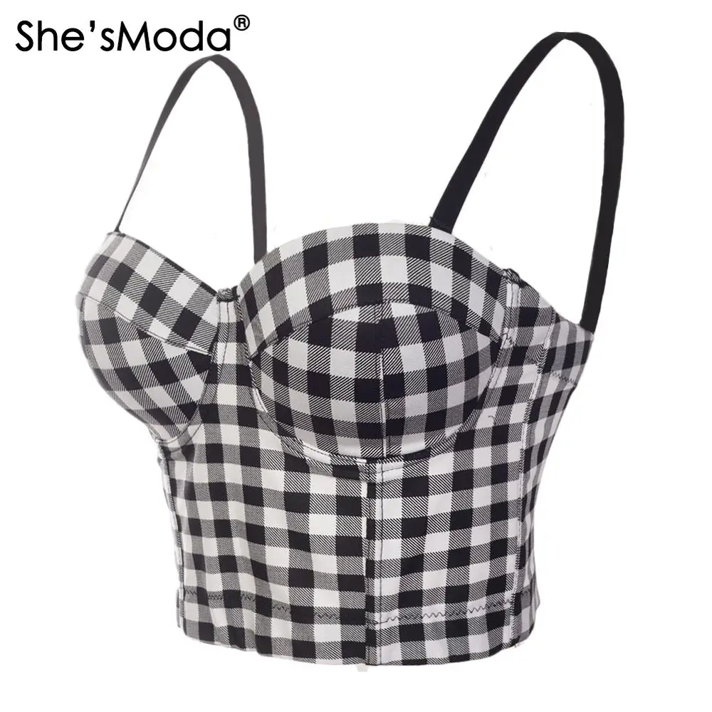 She'sModa хлопковый бюстье в клетку пуш-ап Бралетт для ночного клуба женский цветочный бюстгальтер укороченный Топ жилет корсет размера плюс
