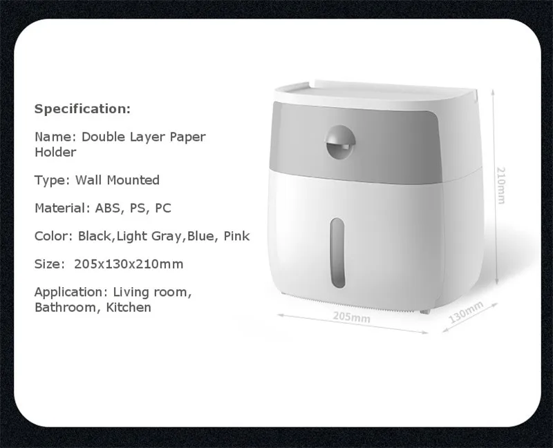 Особенности:1. Водонепроницаемость и защита от брызг, держите ткань вдали от влаги.2. С помощью вытягивающих-упорядочивающих полиэтиленовых пакетов, гигиенических прокладок и т. Д.3. Держатель телефона, может хорошо разместить телефон и планшет.4.Top Orangzier с отверстием для слива, держать Топ сухим и чистым.5. Полуавтоматический переключатель, удобный для замены ткани.6. Различный выход для рулонной ткани и съемной ткани.7. Режущая кромка, специально разработанная для Рулонной Резки ткани.8. Легко устанавливается, без сверления.