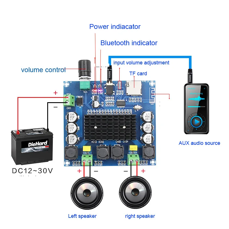 Плата усилителя Bluetooth TDA7498, постоянный ток 12 30 В, 100 Вт ...