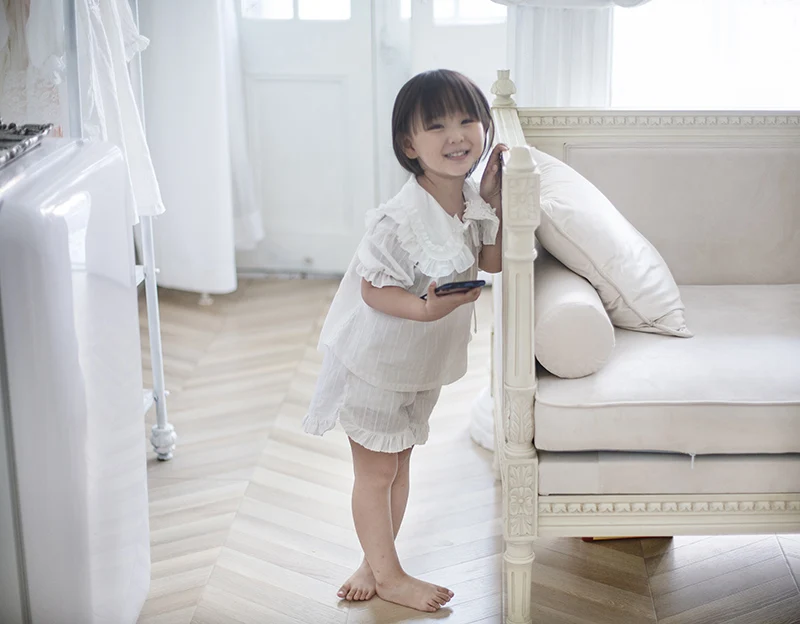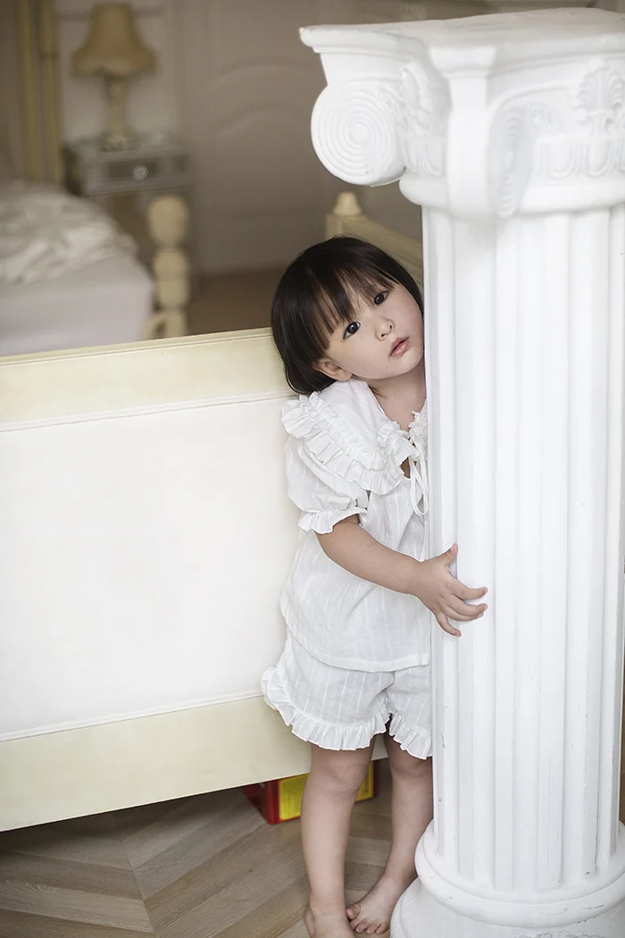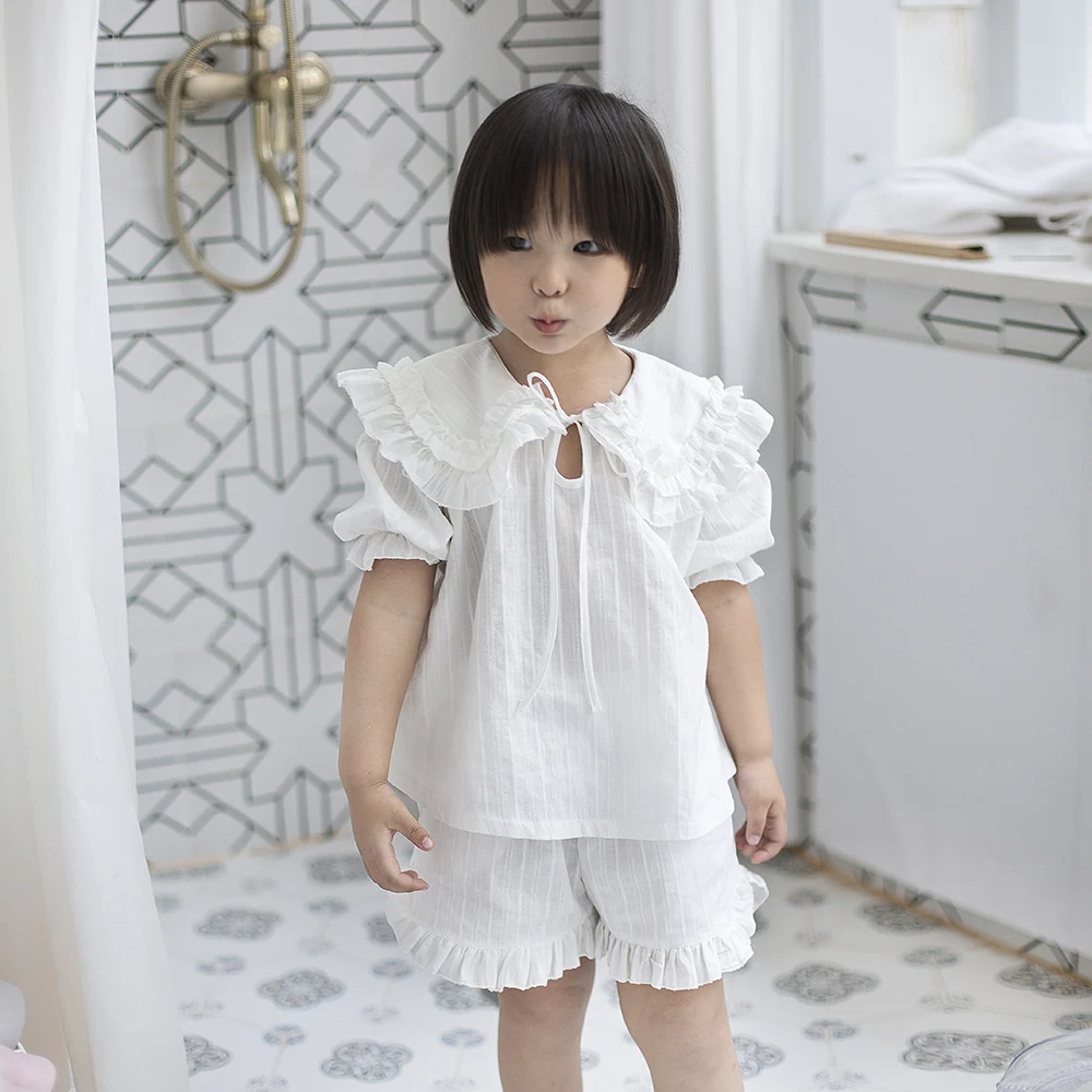 Пижама с отложным воротником для девочек, летняя белая плиссированн...