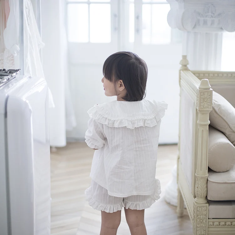 Пижамные комплекты в стиле Лолиты для девочек топы с оборками и воротником «Питер Пэн» + шорты, винтажный пижамный комплект для малышей, одежда для сна, одежда для детей