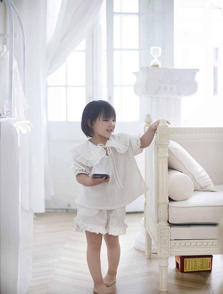 Пижамный комплект в стиле лолита для девочек, топ с воротником Питер Пэн и оборками и шорты, винтажный детский Пижамный комплект для сна и отдыха, детская одежда