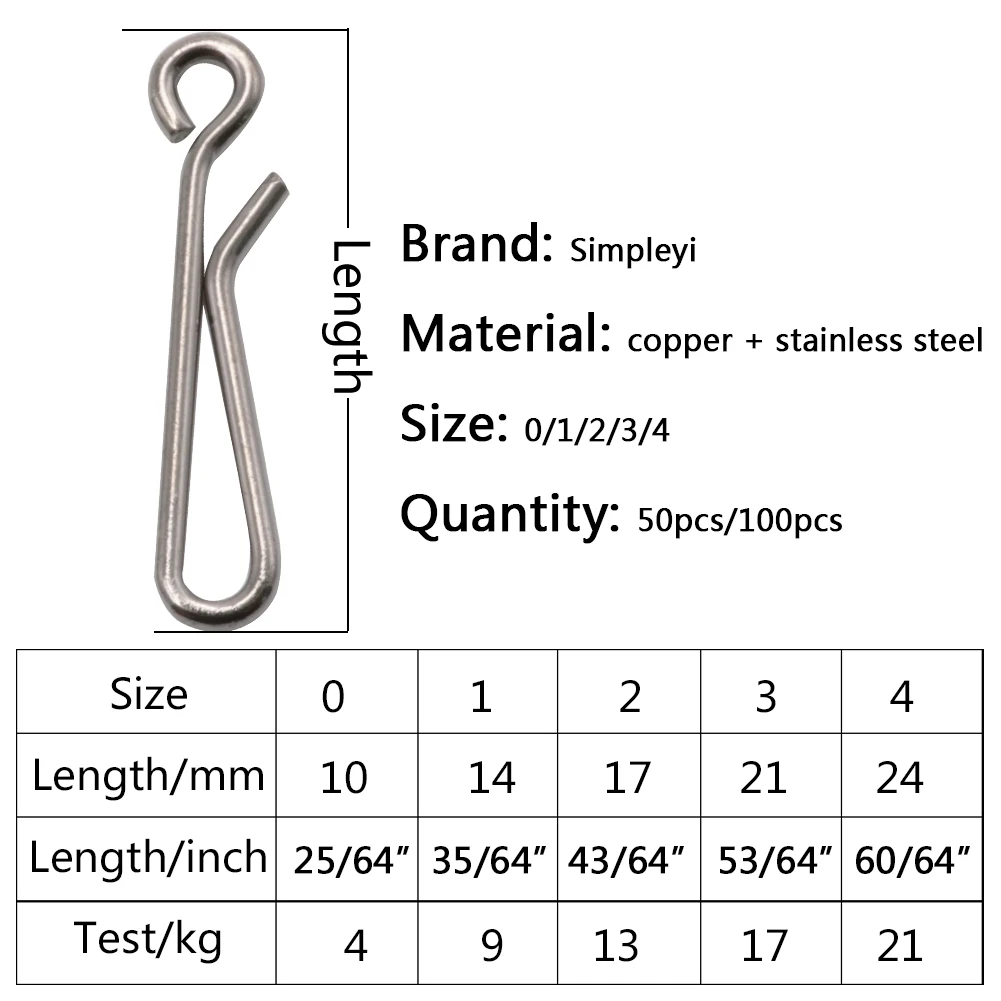 50-100 шткор. крючок из нержавеющей стали с быстрым зажимом и защелкой поворотные твердые кольца 0 #-4 # безопасные защелки рыболовный крючок Соединительный Крюк Инструмент