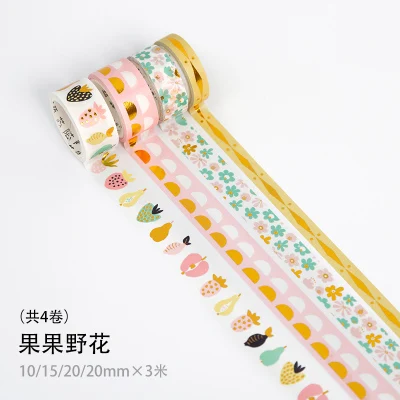 3 м 4 шт. микс, широкий золотой, геометрической формы, фруктовый стиль, Васи-лента, DIY Наклейка для скрапбукинга, маскировка этикеток, домашний декор