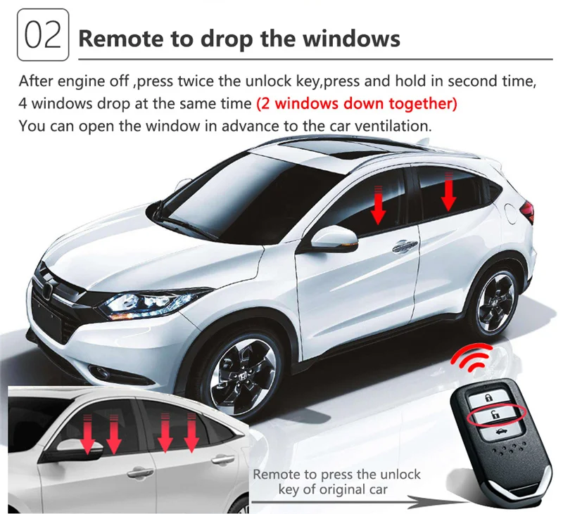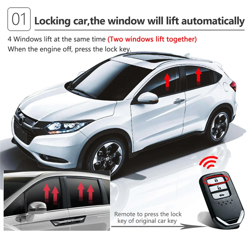 Пульт для нажатия на кнопку"Замок"Оригинального автомобильного ключа 4 окна поднимаются закрытыми.