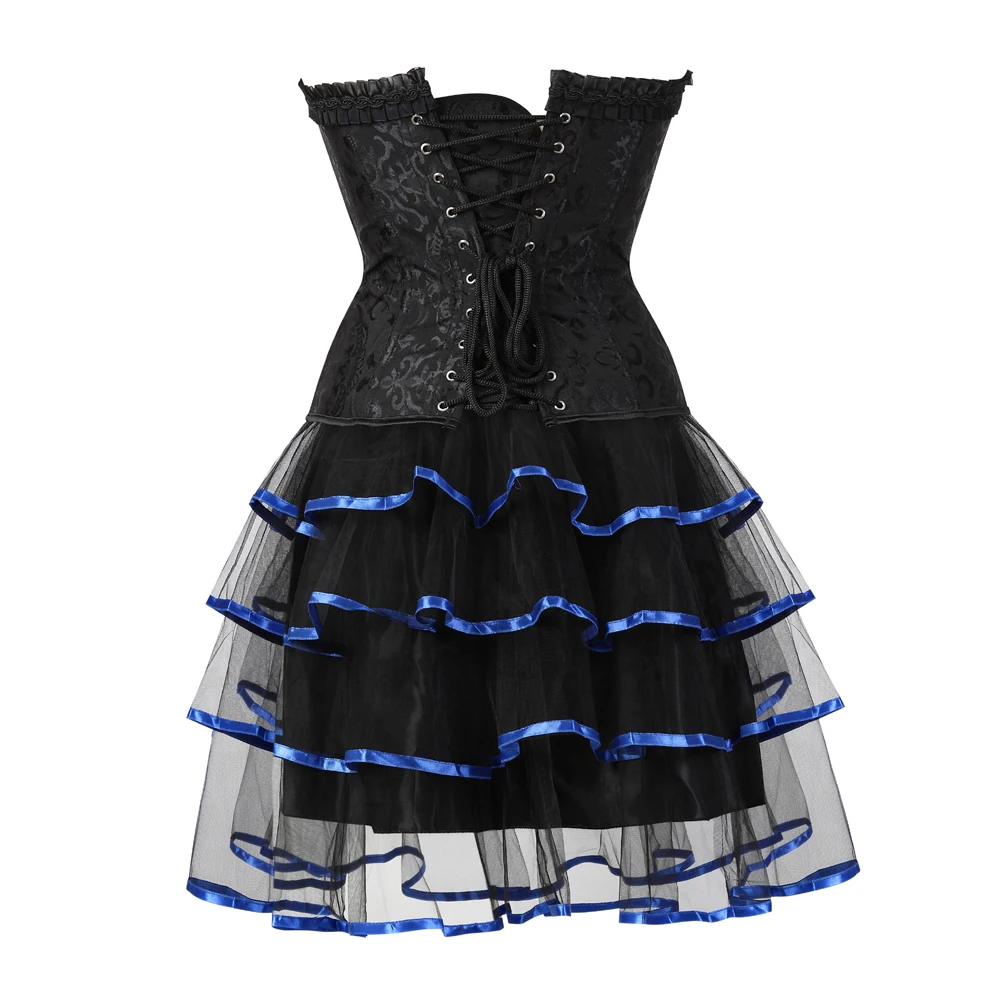 Готическое винтажное цветочное кружевное платье-корсет, Женский соблазнительный атласный корсет для бурлеска с оборкой, топ с мини-юбкой, комплект женского бюстье