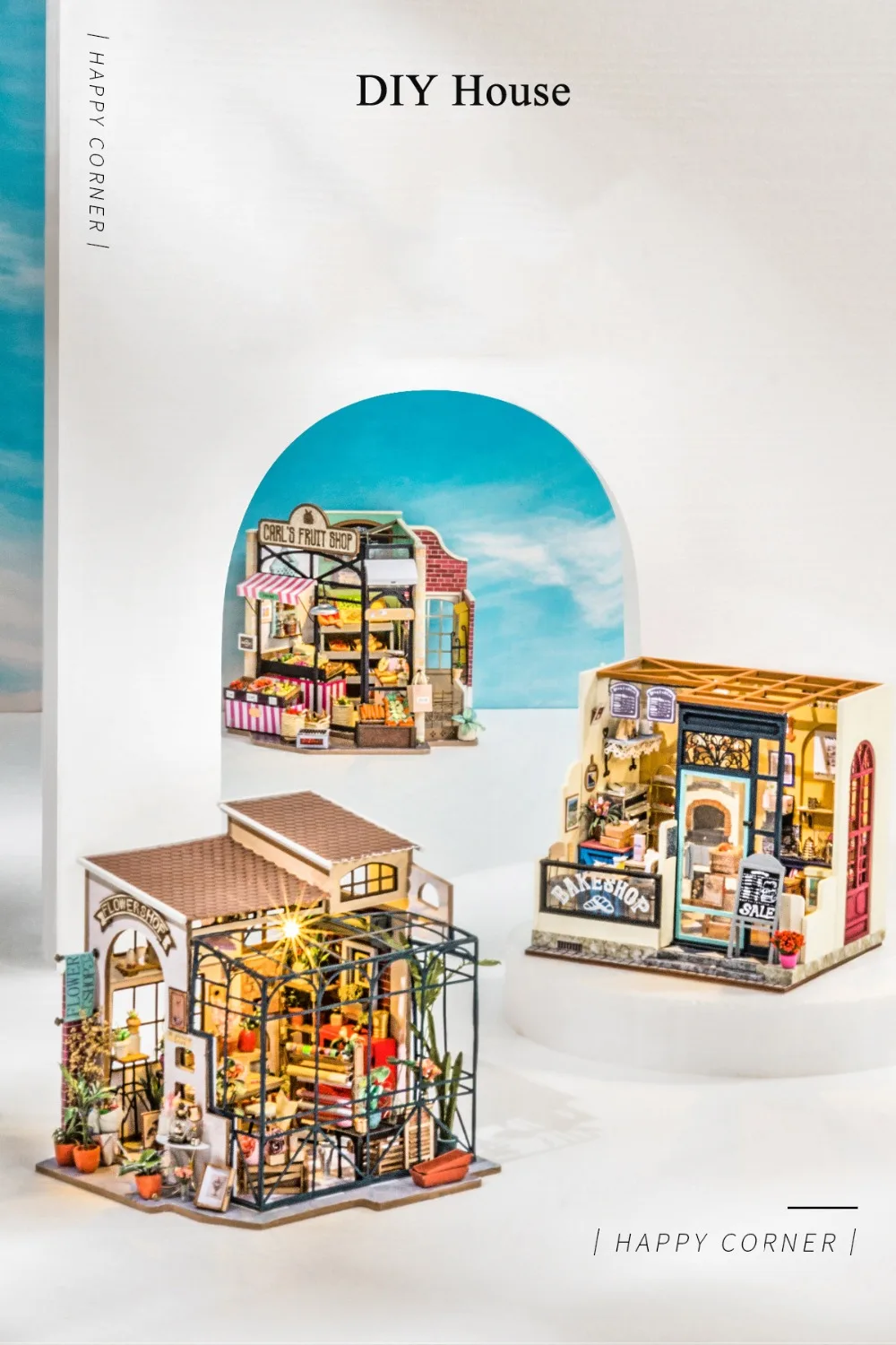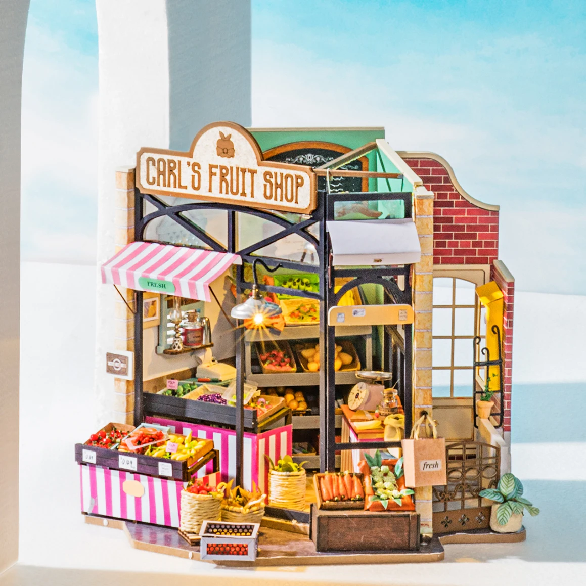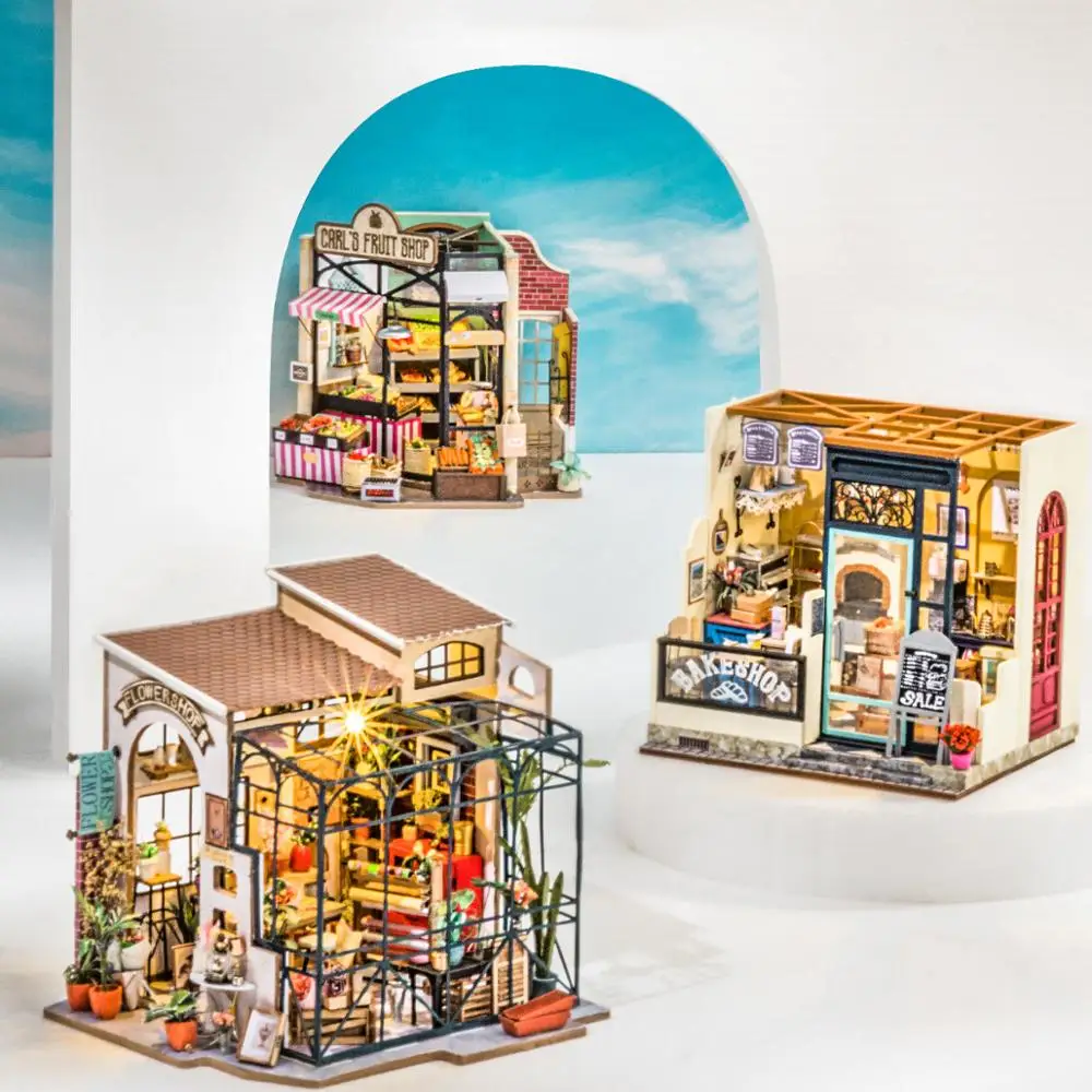 Миниатюрный деревянный кукольный дом Robotime Rolife, фруктовый дом ручной работы, цветочный магазин с мебелью, игрушки для детей, подарок