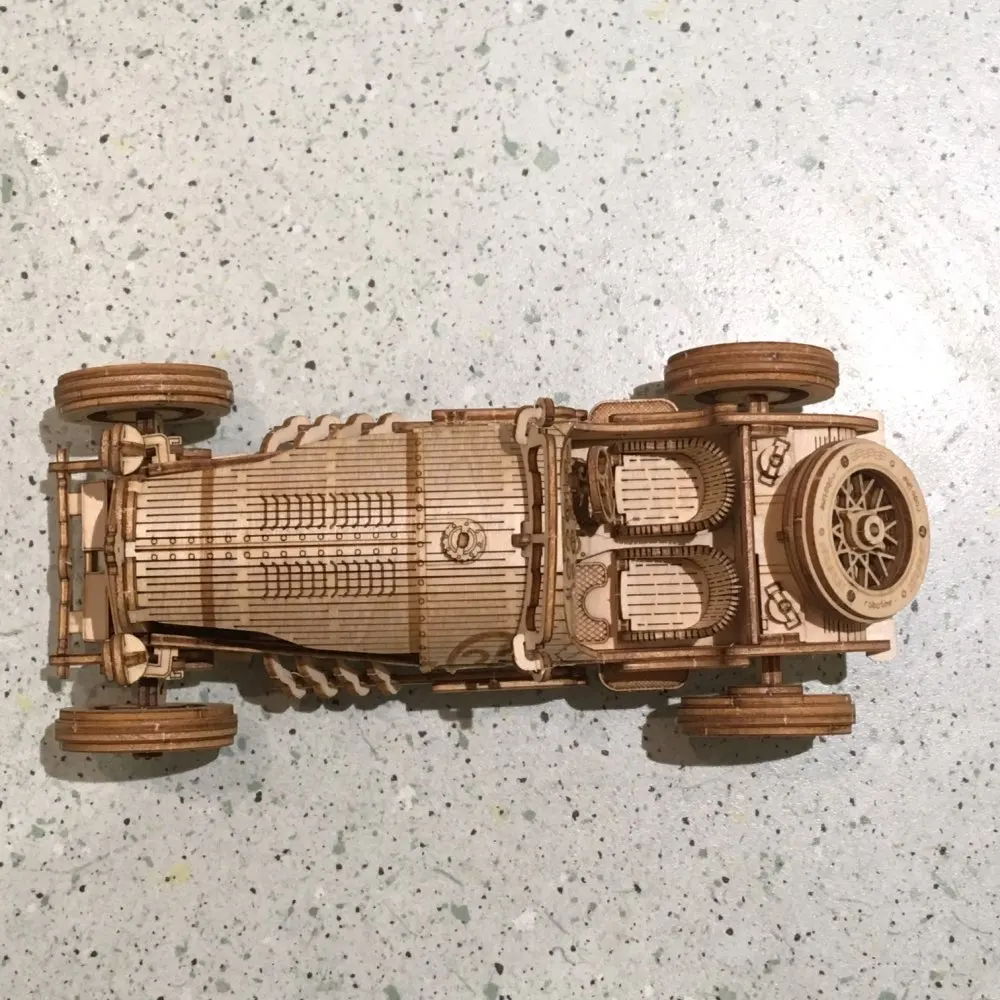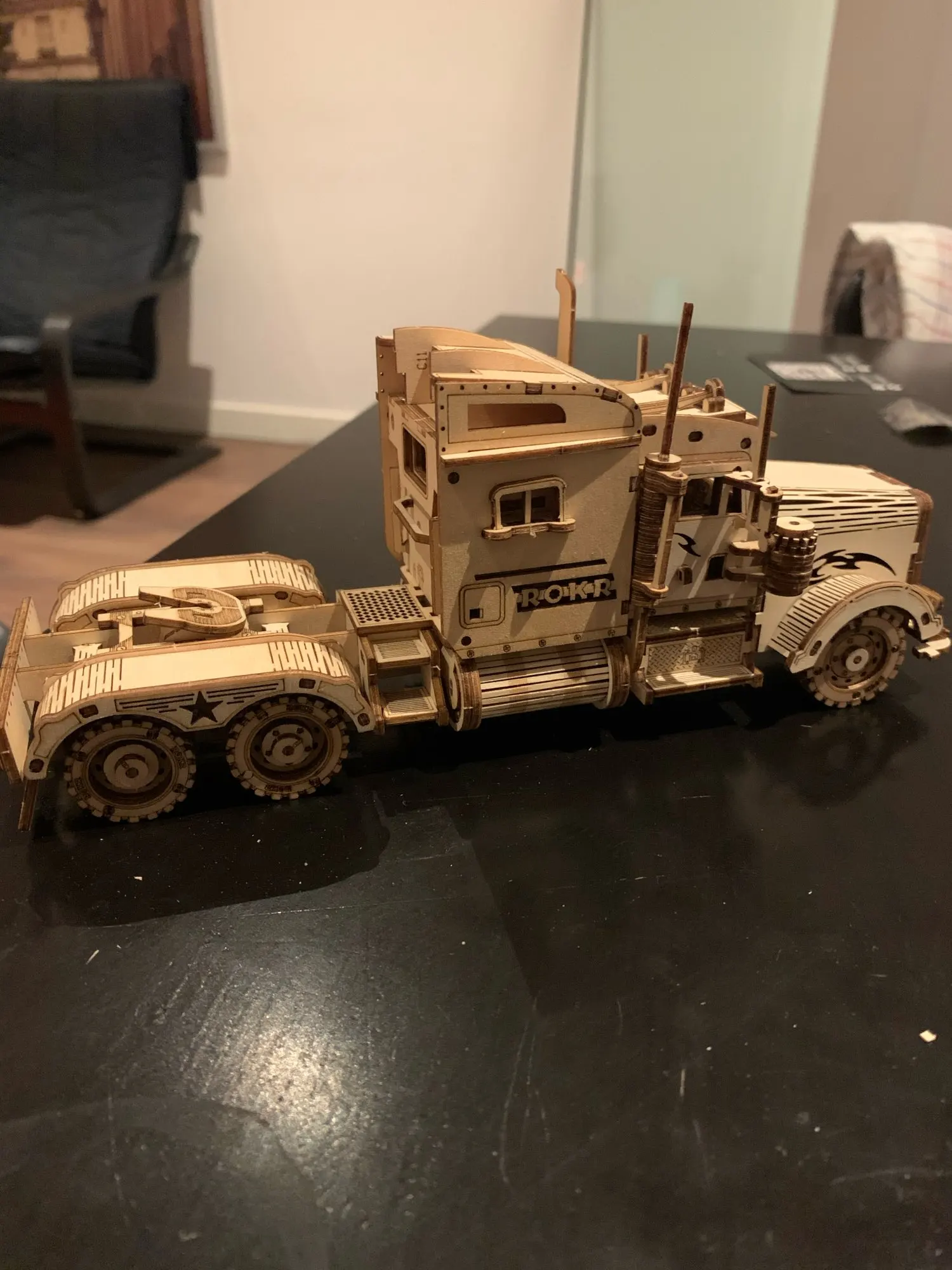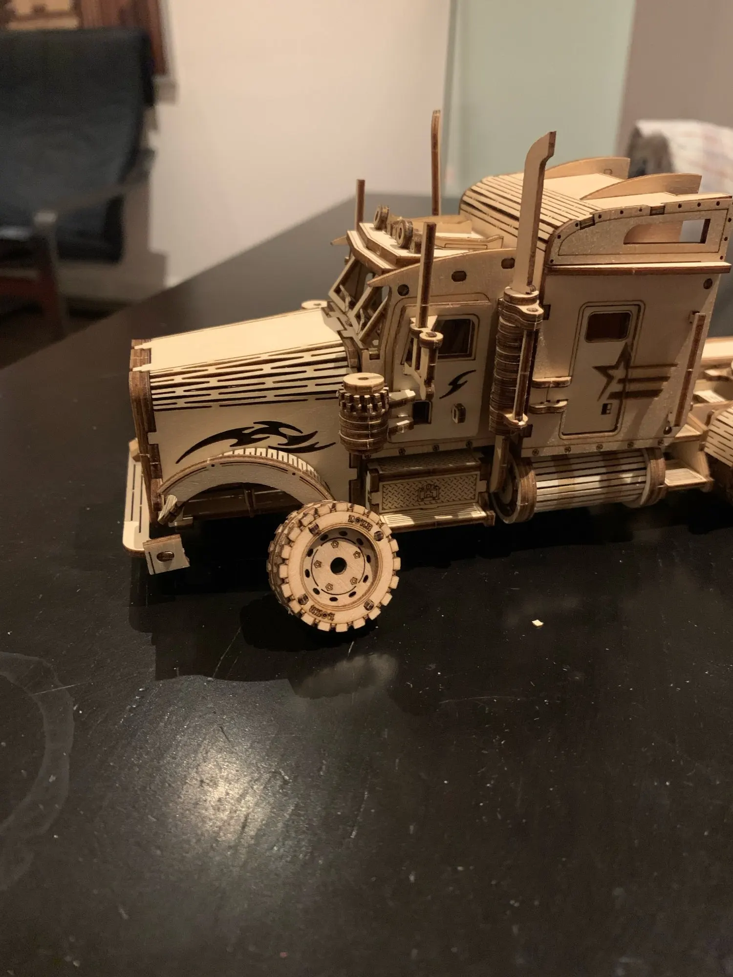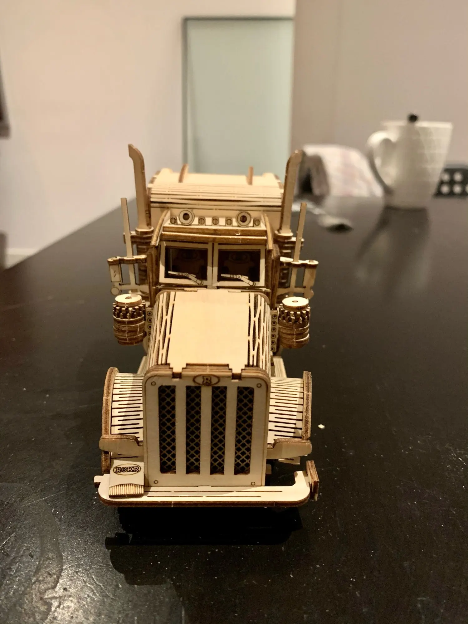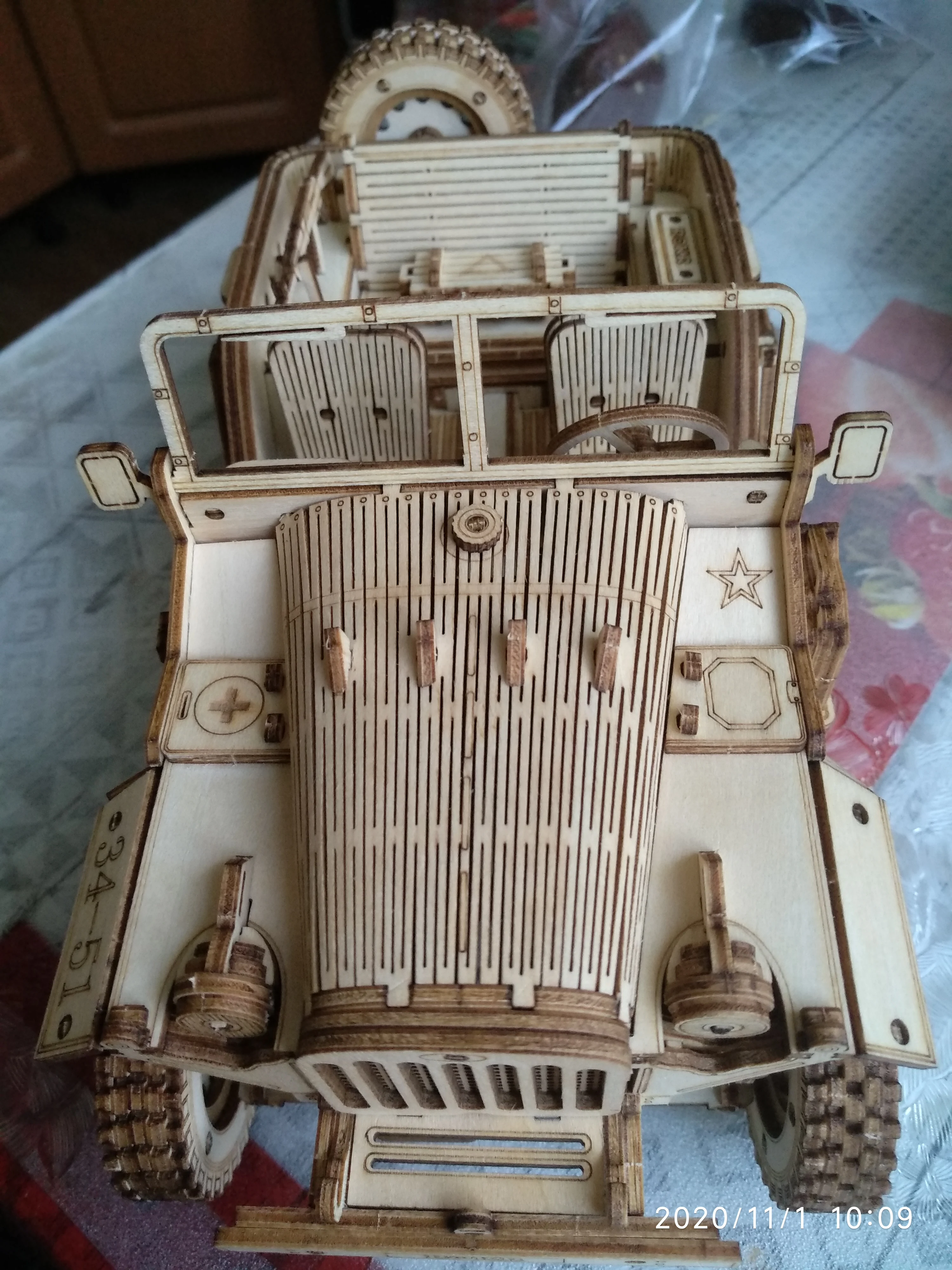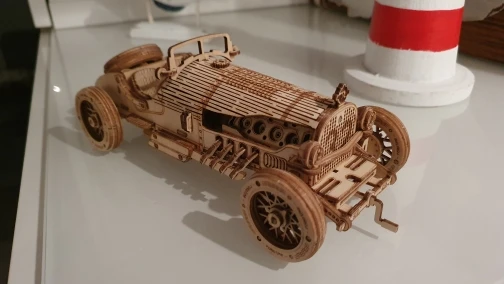 Продукт из дерева очень тонкий, красивый в деталях, я ожидал немного больше, и я ожидал, что у него будет весна и движется машина. Все равно красиво