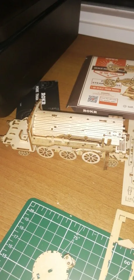 Нуууууу.... Собрать не получилось, так как детали маленькие и хрупкие, от малейшего нажатия ломаются, к сожалению без нажатия их соединить друг с другом не получается... Заменить или не использовать эти детали тоже нельзя. Так что если вы любите клеить а не собирать тогда это для вас. Запаситесь клеем для дерева и терпением.