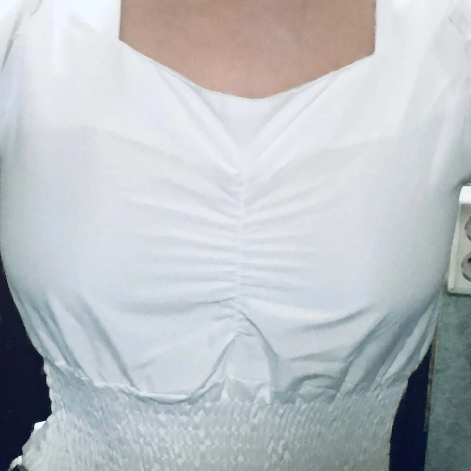 Топ был именно таким, как показан. Я получил белый, и он немного просвечивается, но это нормально, потому что Топы очень красивые. Я рекомендую вам размер вверх, так как руки немного тугие.
