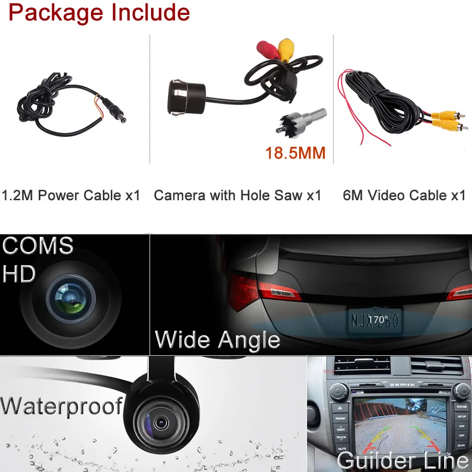 Мини-камера заднего вида с отверстием 18 мм, водонепроницаемая парковочная HD камера с ночным видением для автомобильного монитора, DVD, головное устройство