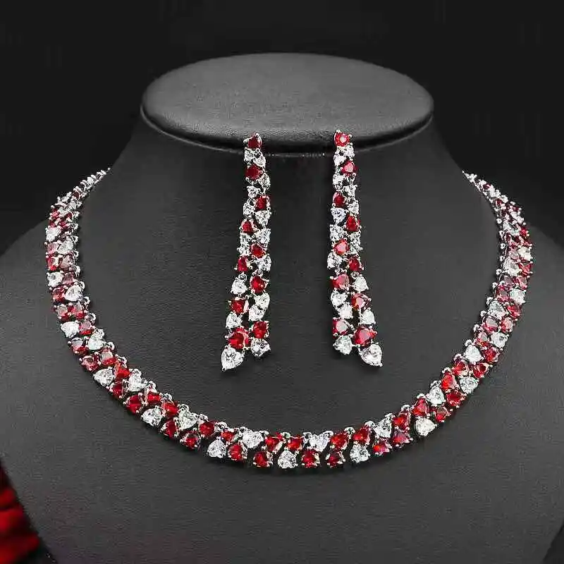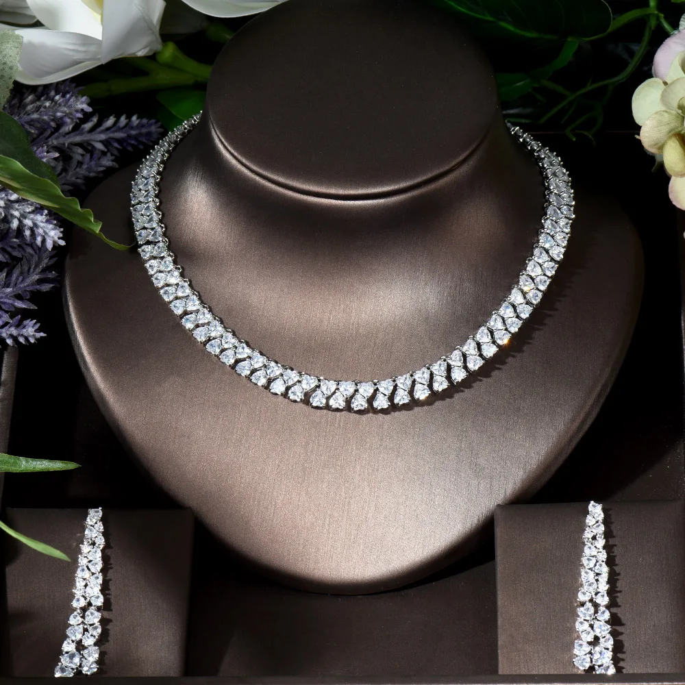 HIBRIDE Роскошный прозрачный кристалл циркония серьги и ожерелье на...