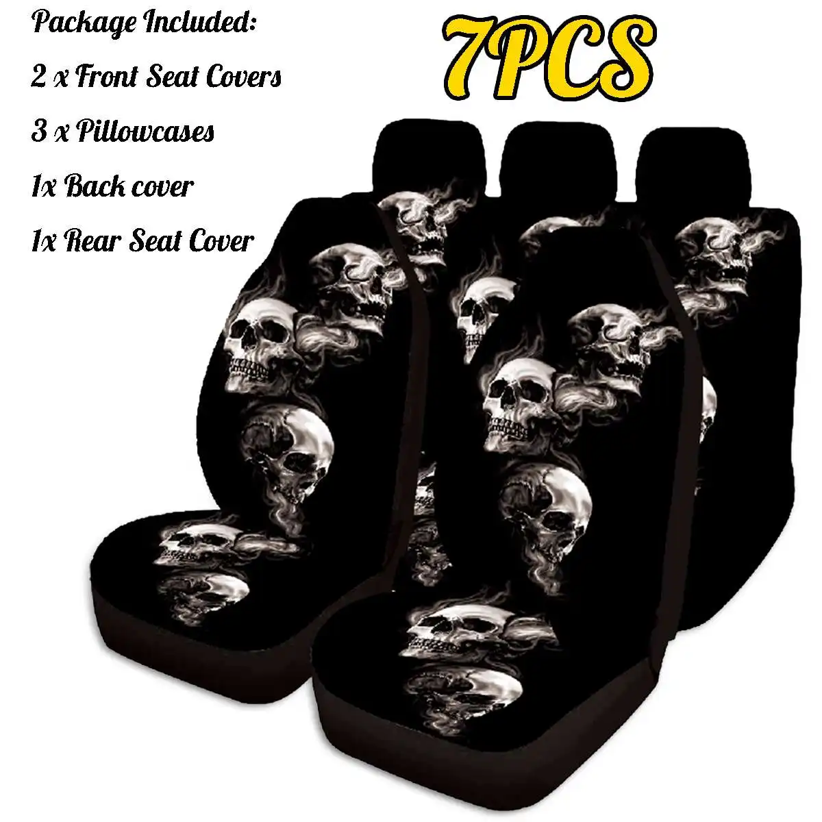 7 шт., чехлы для передних автомобильных сидений с 3D-принтом черепа, универсальные Защитные чехлы для большинства автомобилей, внедорожников, автомобильные аксессуары