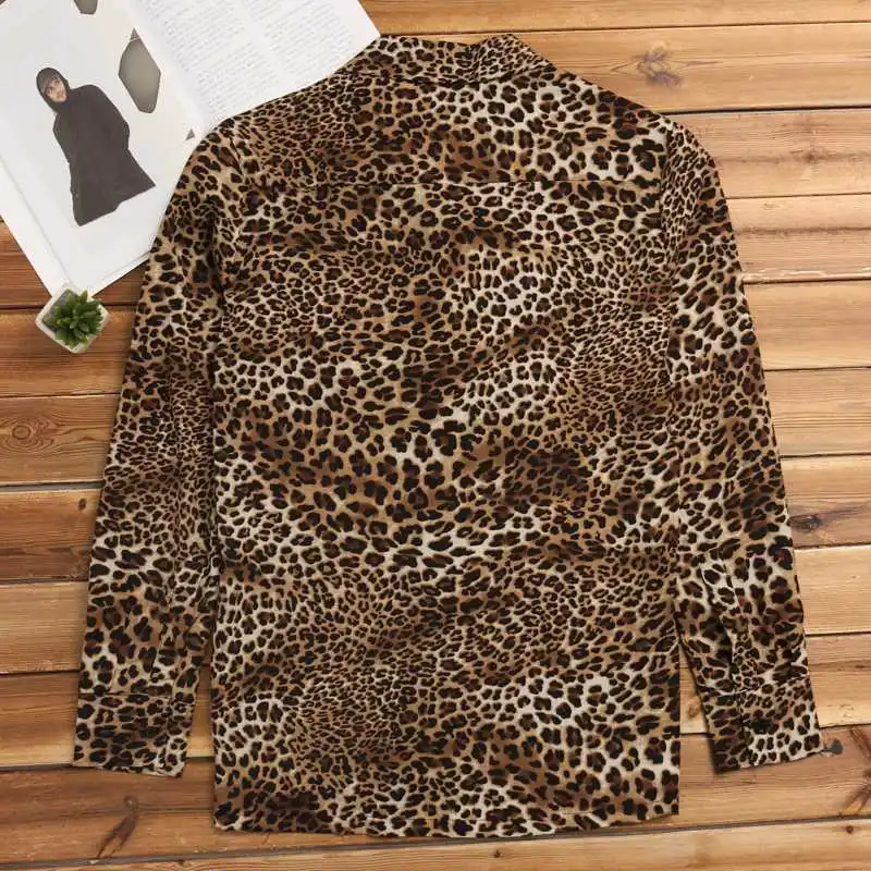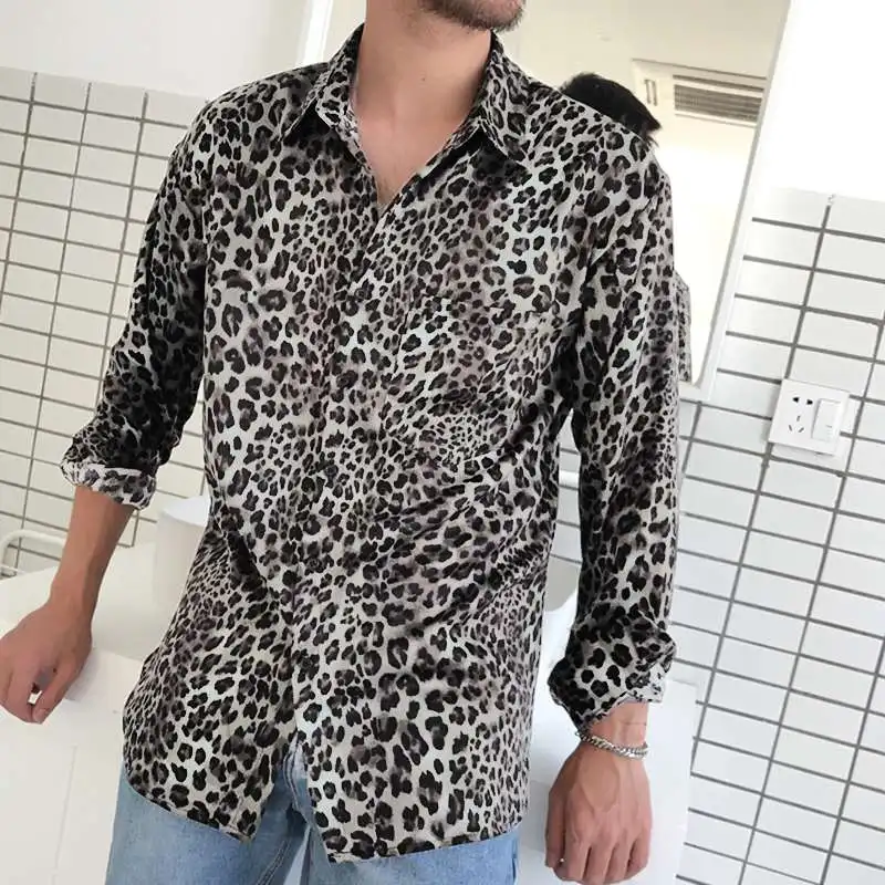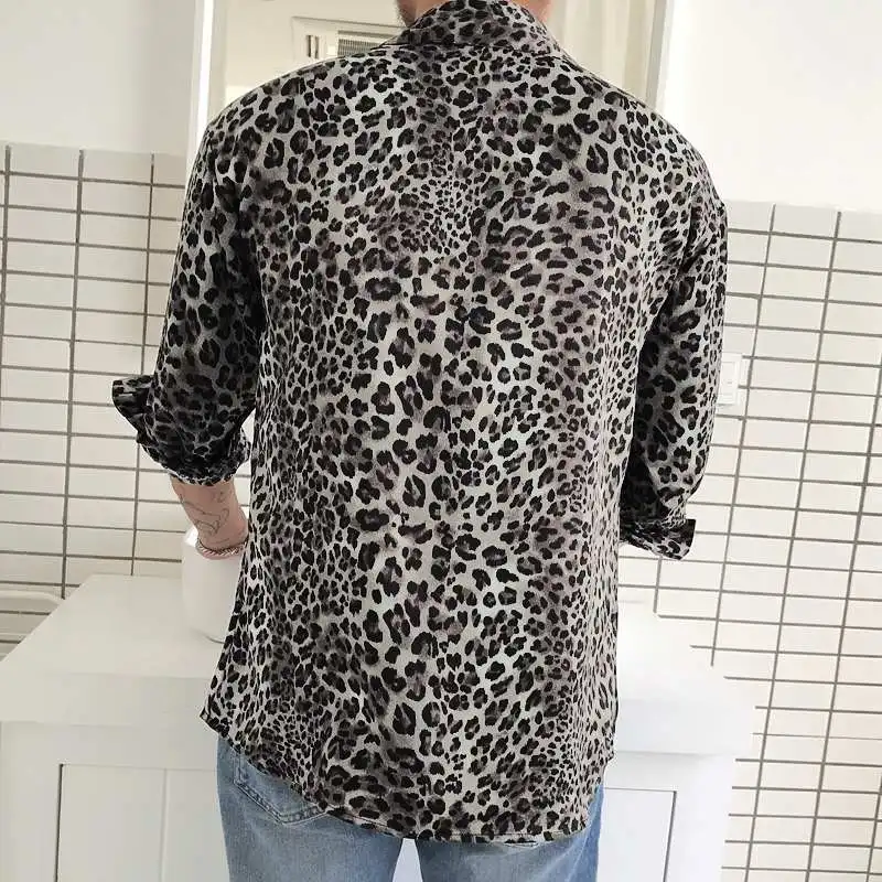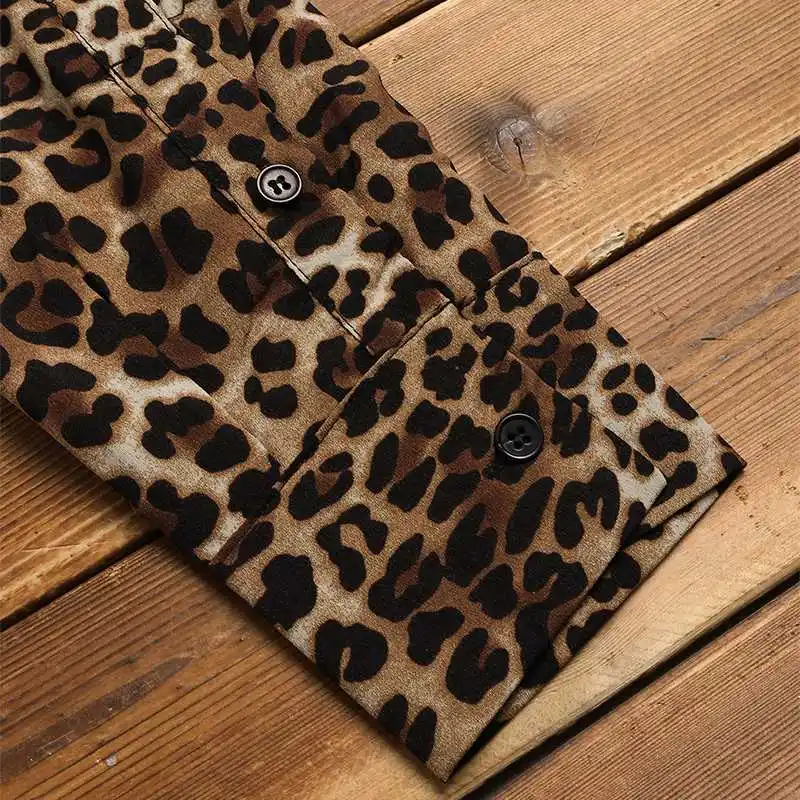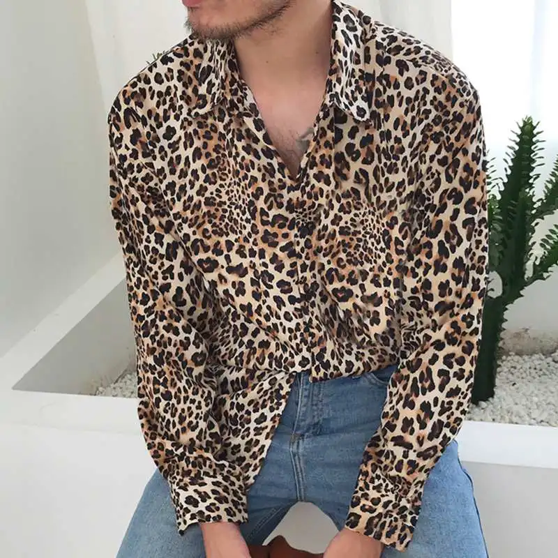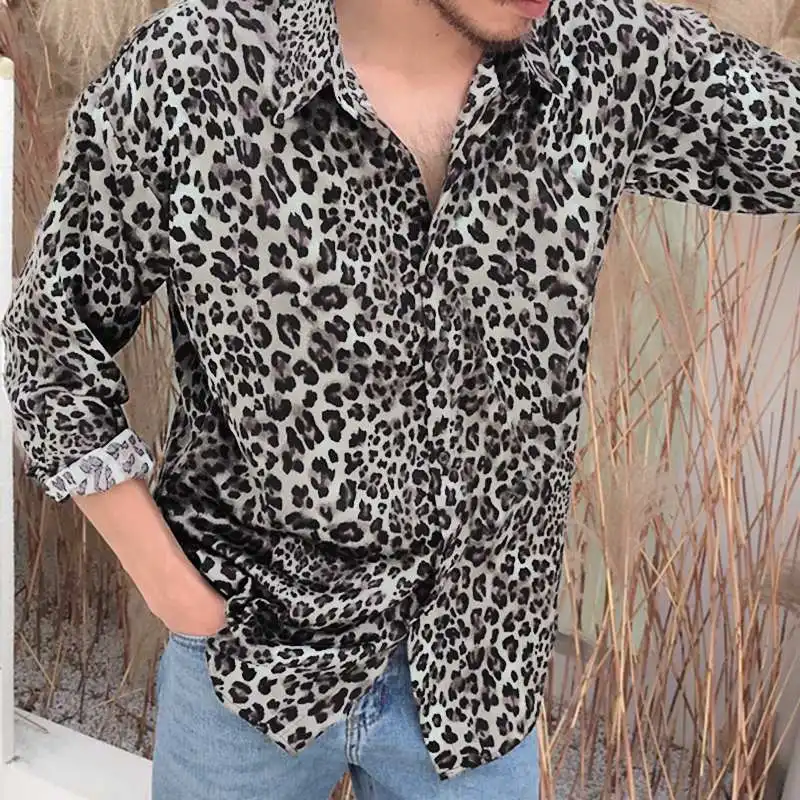 Рубашка мужская с леопардовым принтом, длинным рукавом