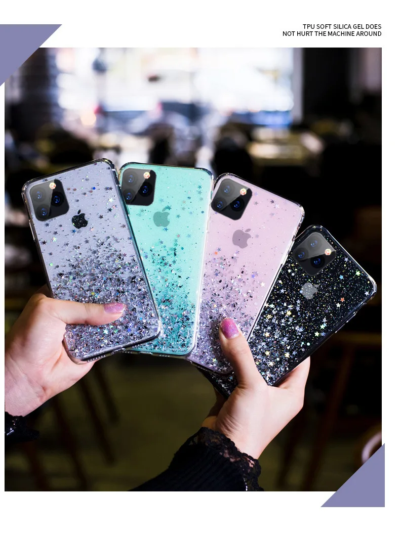 Мягкий чехол с блестками для iPhone 13 mini XR X XS Max 6 6S 7 Plus...
