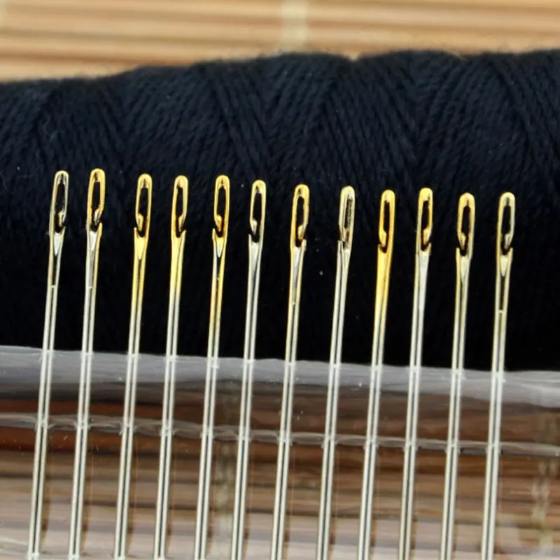 12 шт. иглы для шитья с золотым хвостом, многоразмерные, легко проходит сбоку, инструмент для ручного шитья и вышивания, швейные иглы сделай сам для рукоделия