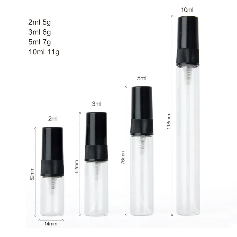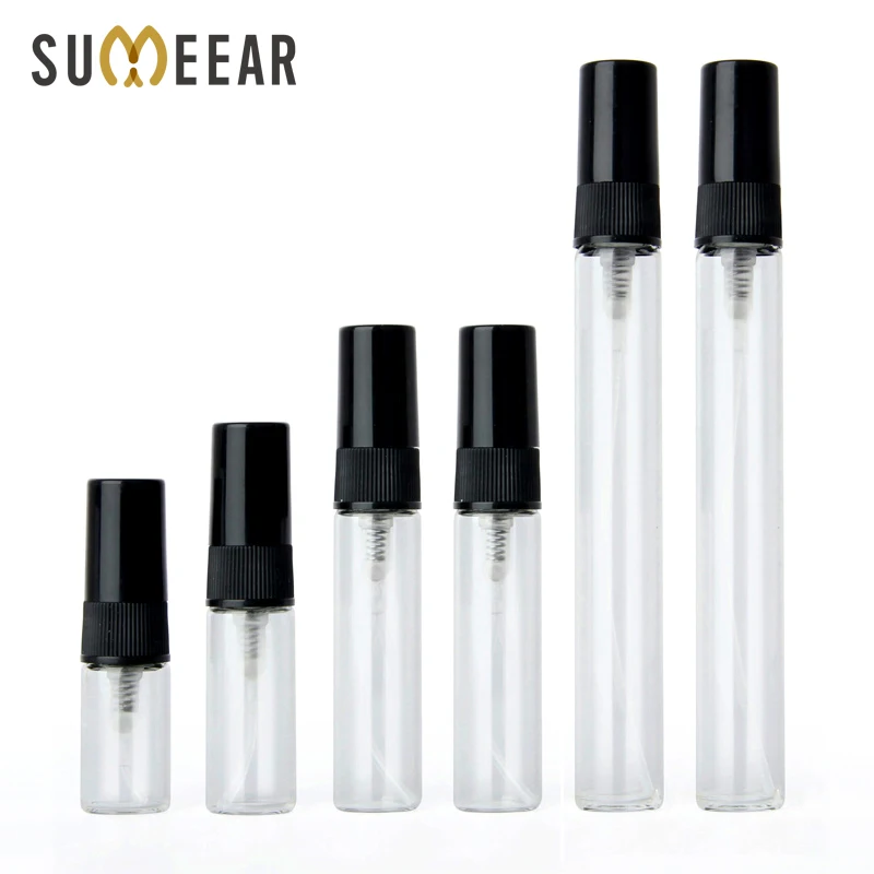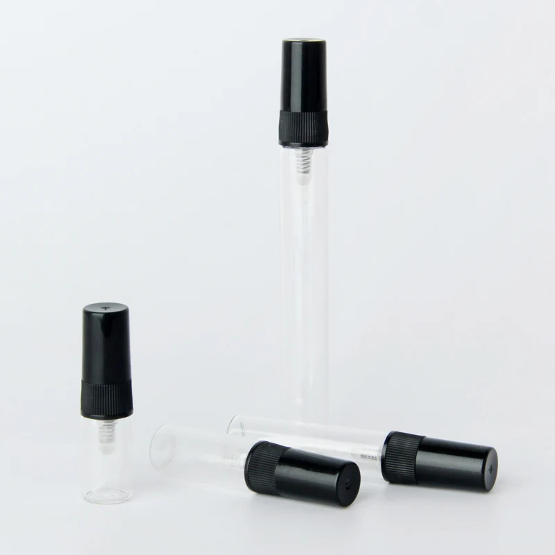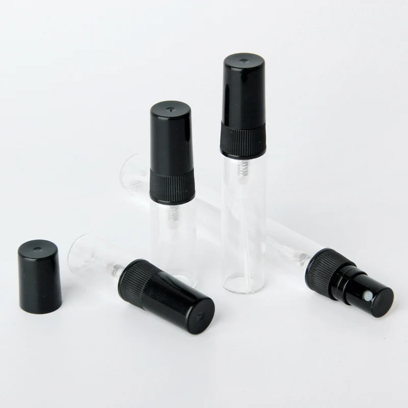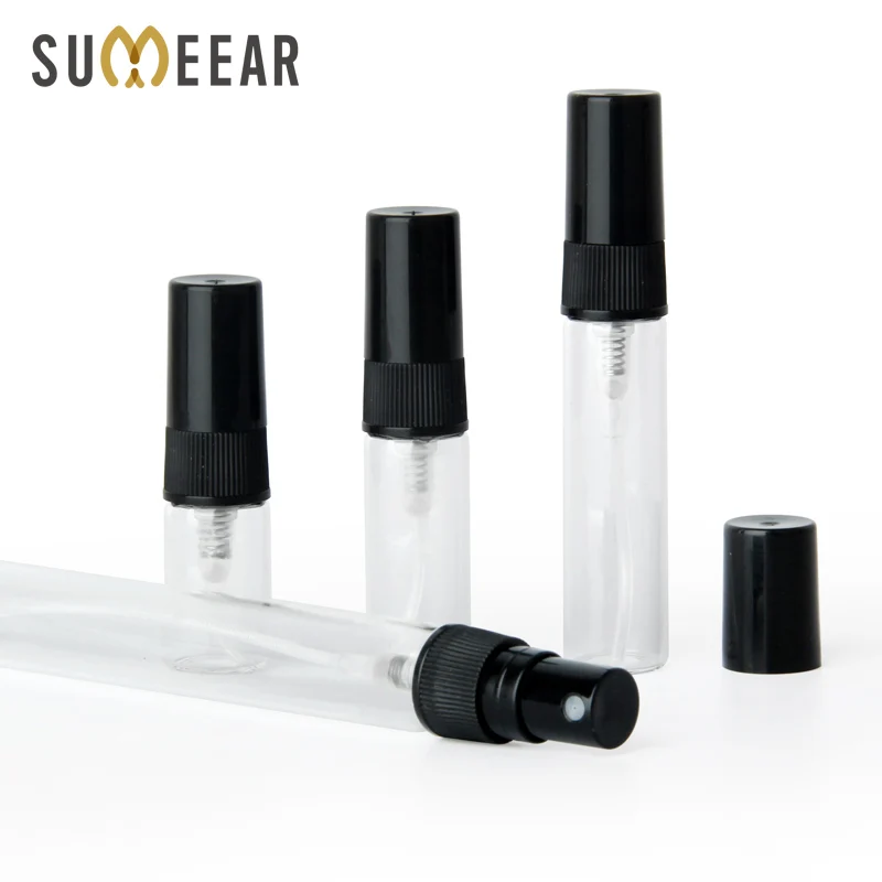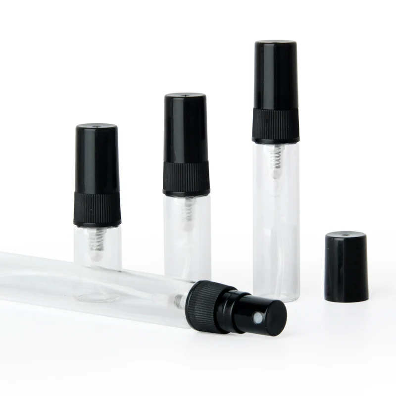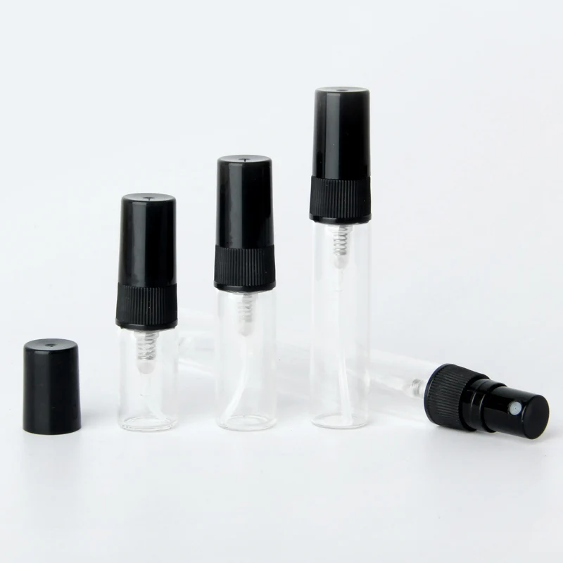 100 шт.лот 2 мл 3 мл 5 мл 10 мл стеклянный флакон-распылитель пустые флаконы для духов черный распылитель дорожный косметический контейнер