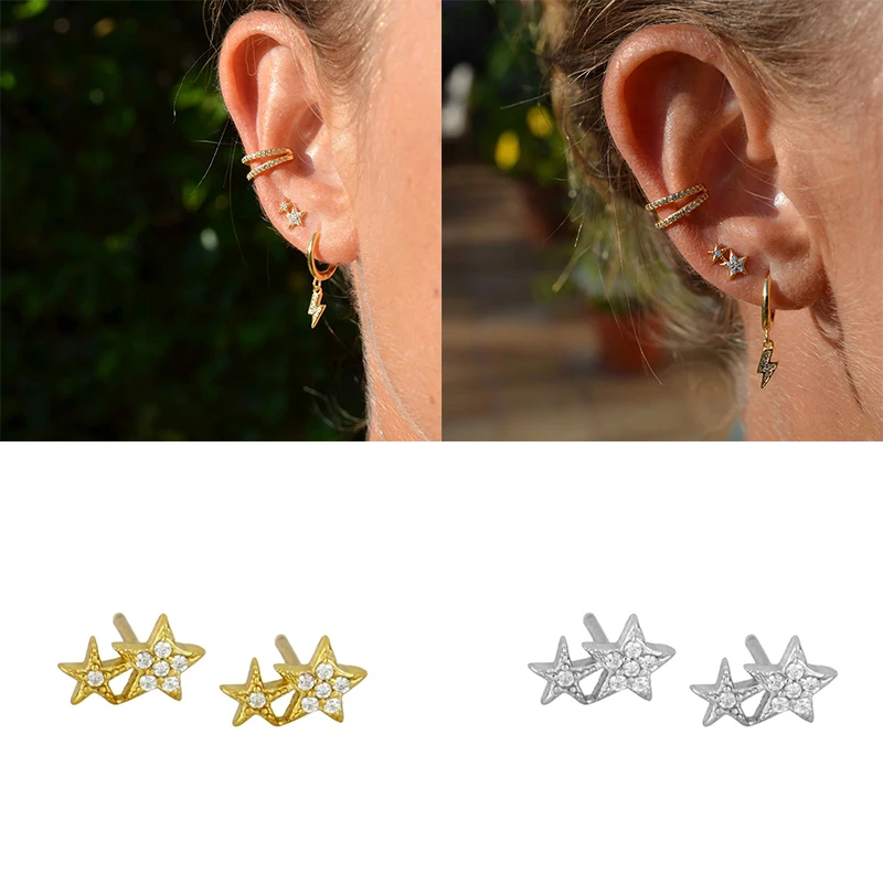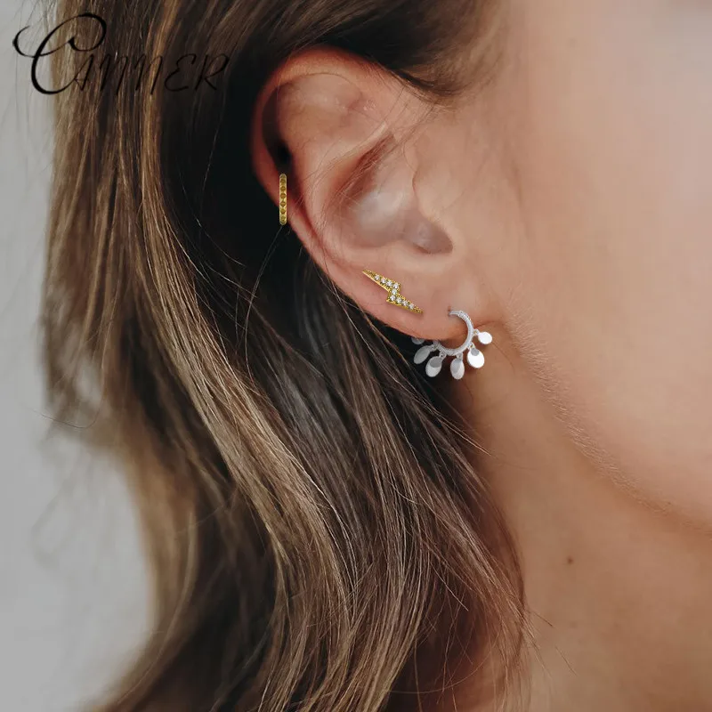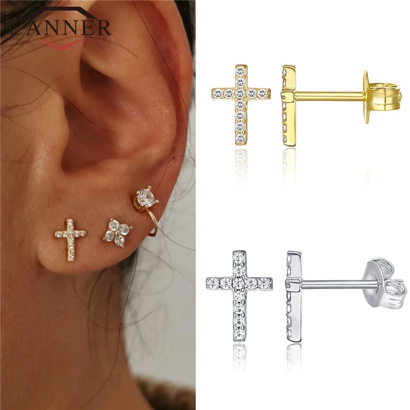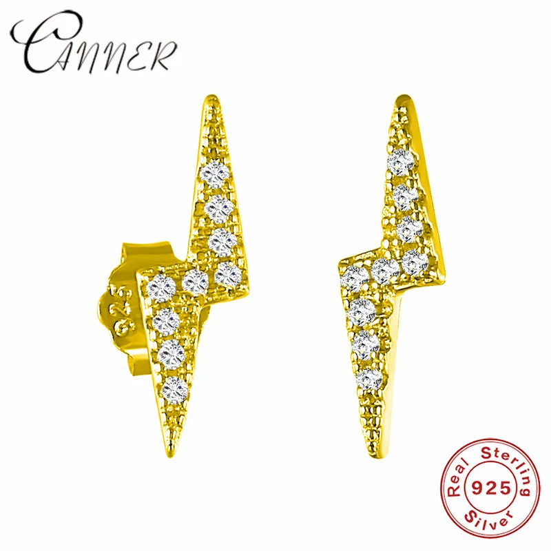 Женские серьги-пусеты с молнией CANNER, серьги-гвоздики из стерлингового серебра 925 пробы с кубическим цирконием, золотистогосеребристого цвета