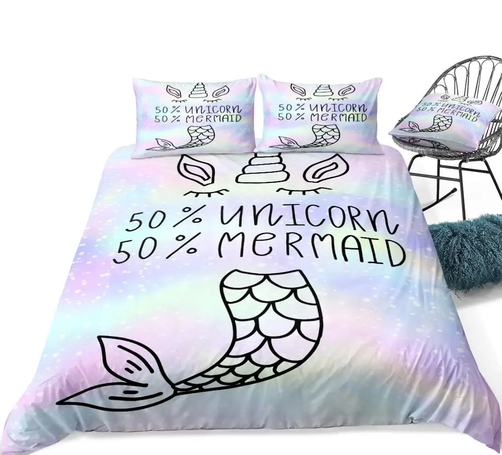Пододеяльник с рисунком русалки, пододеяльник в виде рыбьей чешуи, пододеяльник волшебного цвета для детей, Подростковая мультяшная Радуга, Прямая поставка
