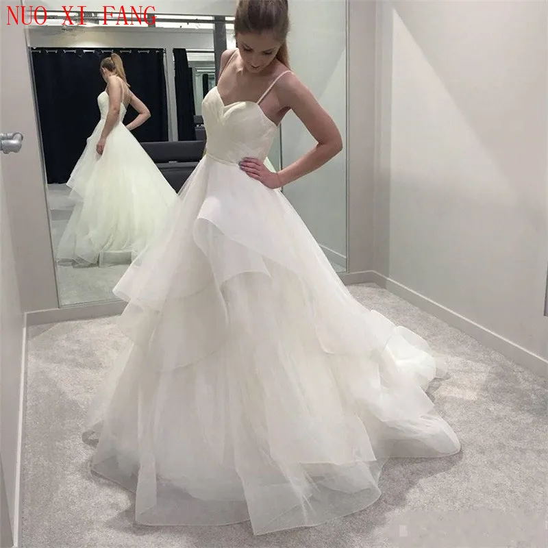 Платье Свадебное Плиссированное на тонких бретельках, с оборками