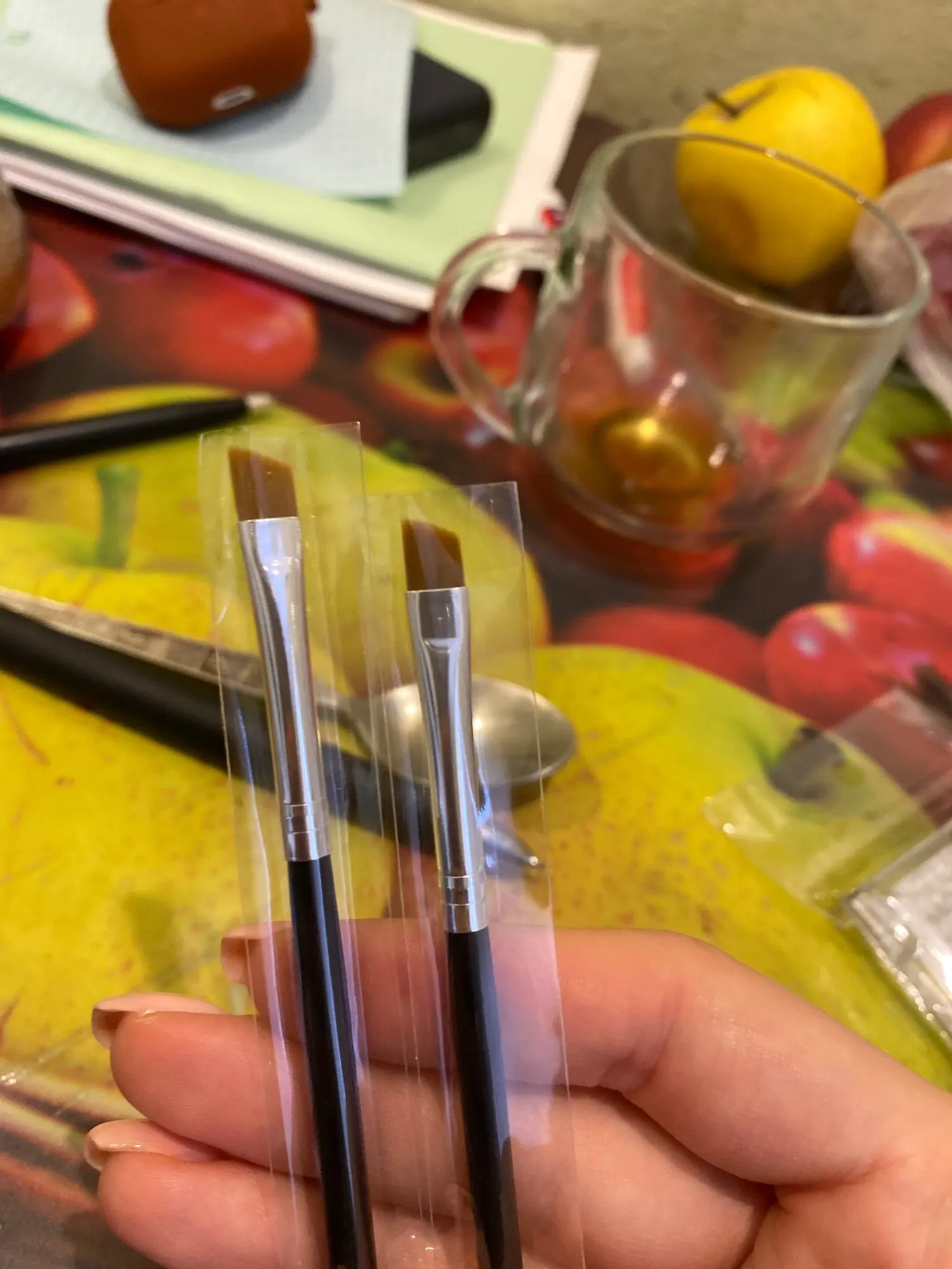 кисточки классные, тоненькие, упругие. для бровей то, что нужно) доставка 3 недели)