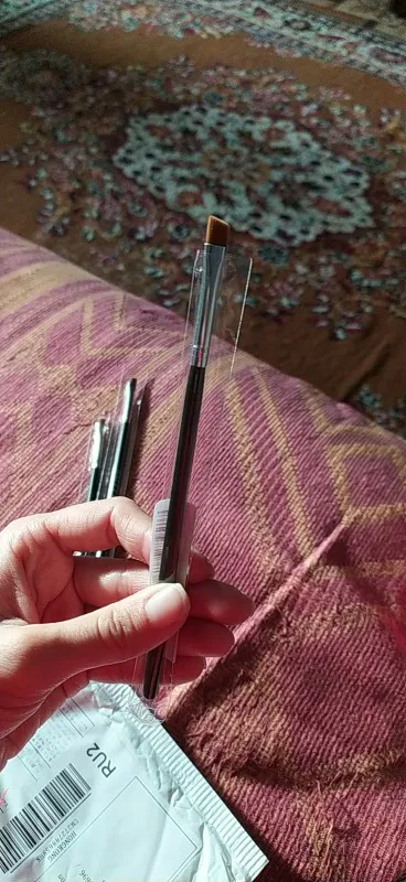 Кисть нормальная, скошена, не имеет никакого противного запаха, оставила одну себе(мастер бровист) одну отдала маме для маникюра. Очень довольна посылкой и продавцом, посылка шла чуть больше 3 недель в Украину (Сумы). (С продавцом не связывалась) .