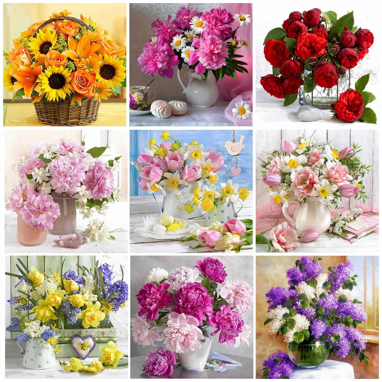HUACAN Алмазная вышивка цветами полная выкладка, круглая картина,алмазная мозаика ручной работы, украшение для дома, подарок