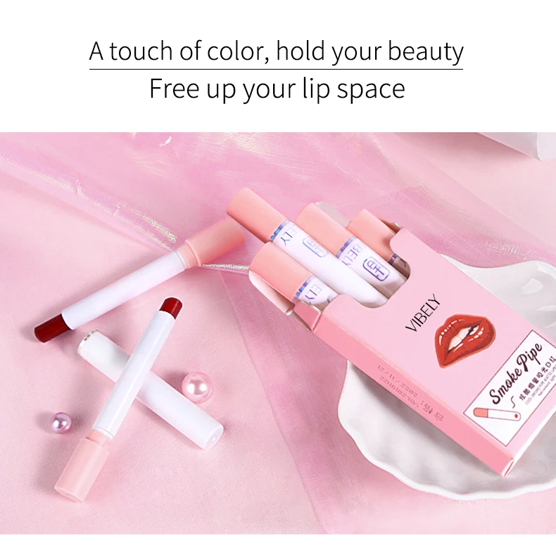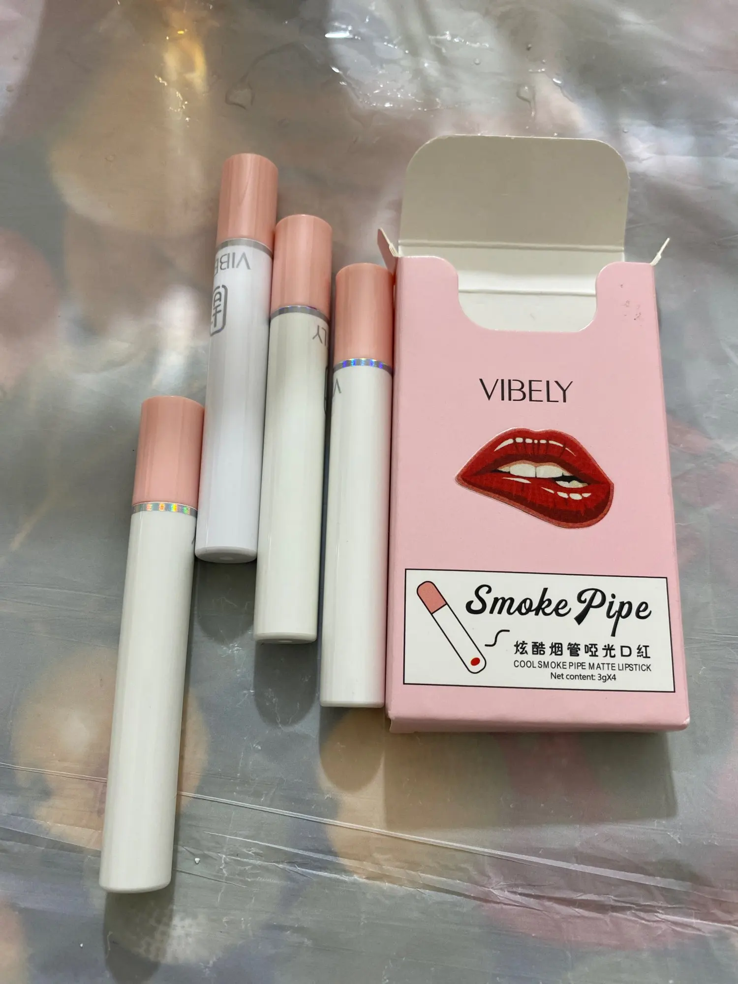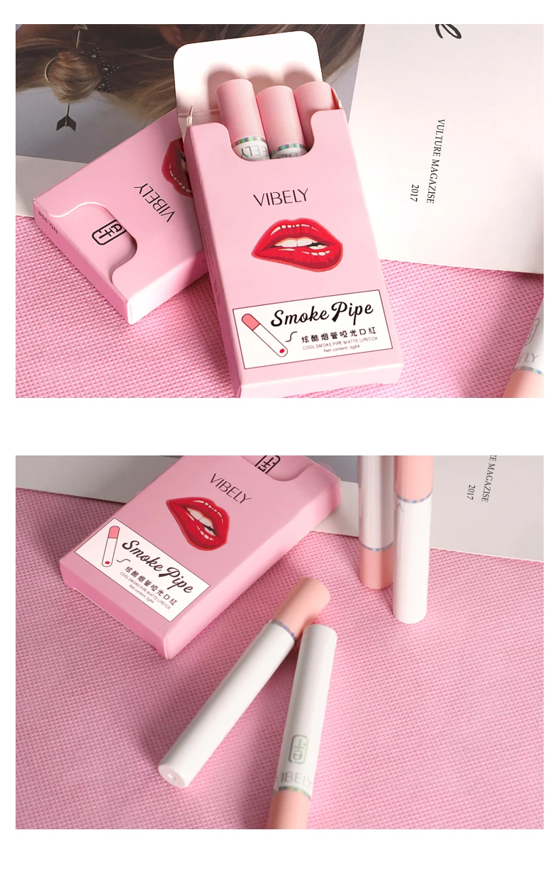 Губная помада Sexy Type, 4 шт., в виде сигареты, матовая, водостойкая, стойкая, Дымчатая, губная помада, бархатный, красный оттенок для губ, Косметика для макияжа