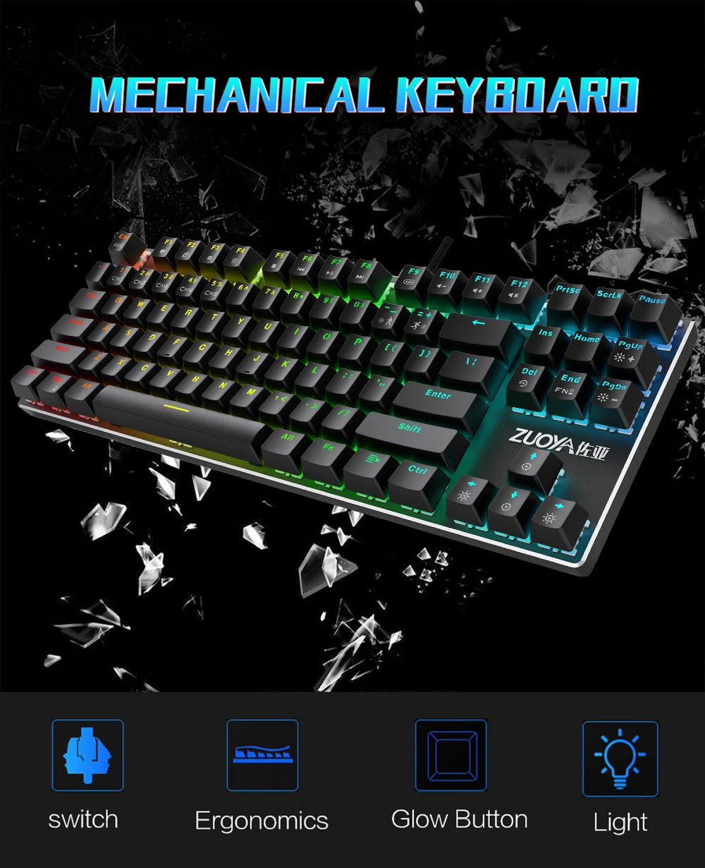 Игровая механическая клавиатура ZUOYA RGB, проводная USB клавиатура...