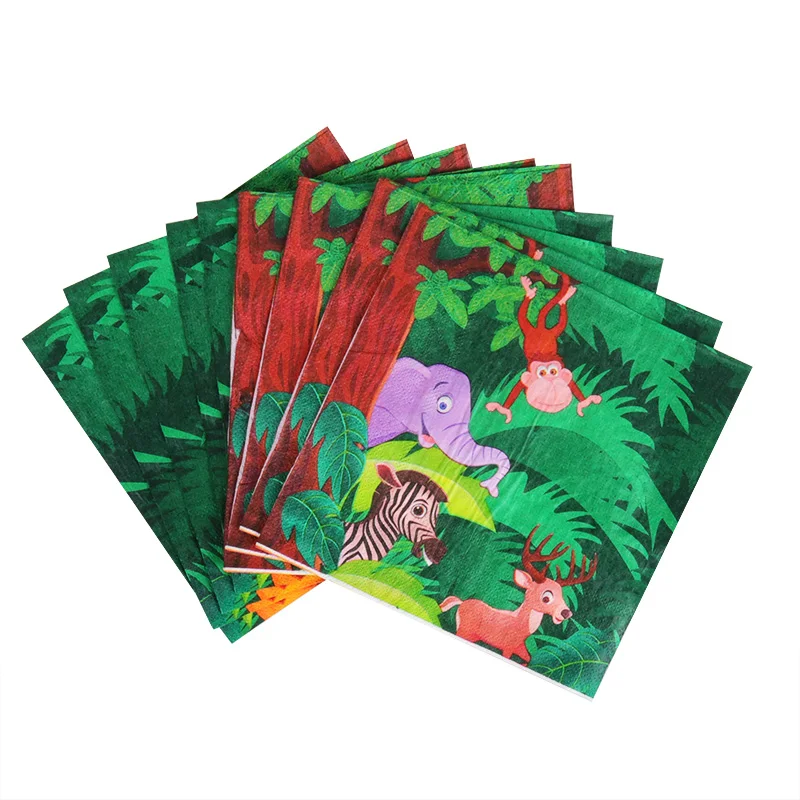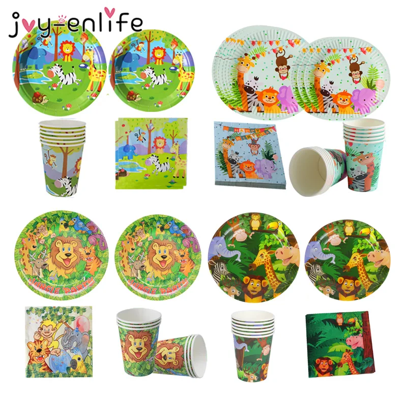 Одноразовая посуда в стиле сафари с животными из мультфильмов, иску...