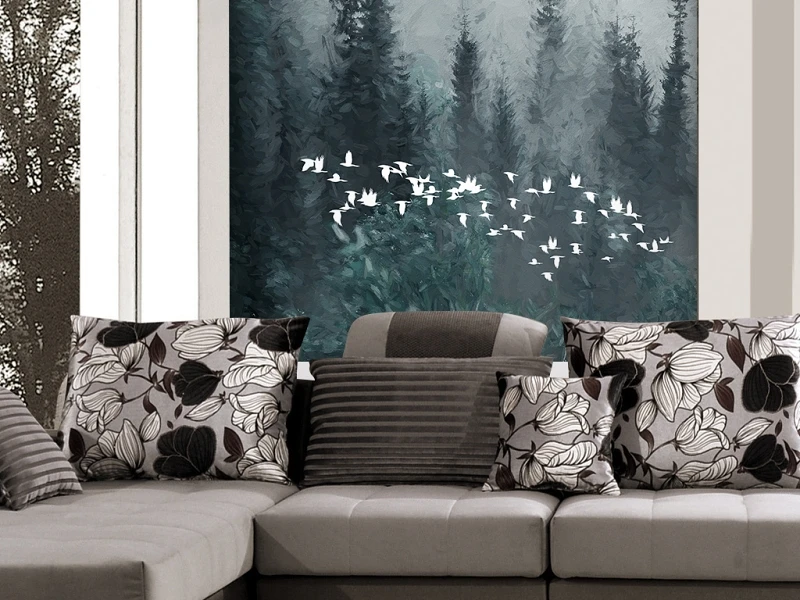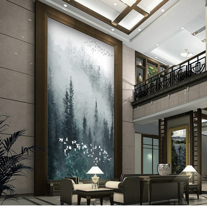 Скандинавский скандинавский Туманный лес пейзаж птицы настенное Искусство Холст постер печать масляная живопись Настенная картина для гостиной 2-35