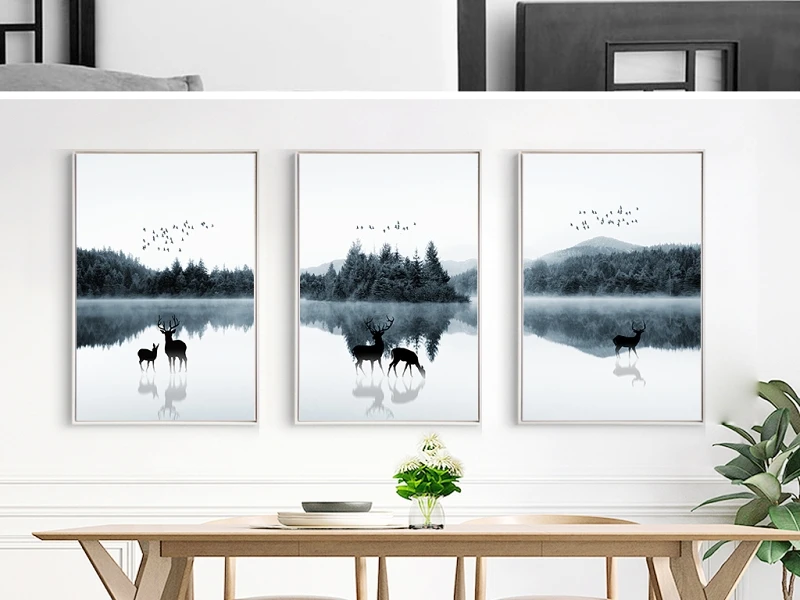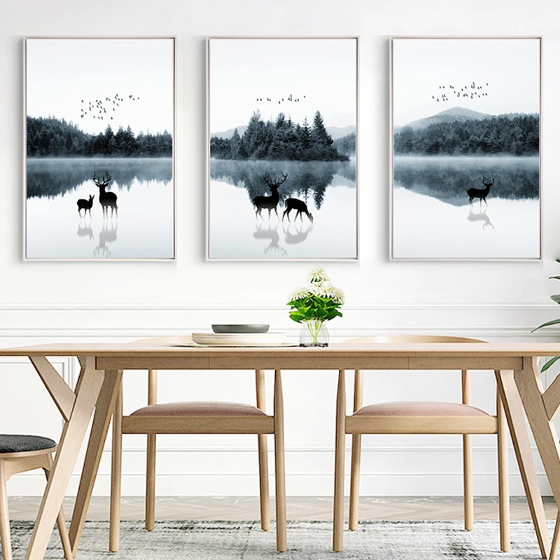 Холст постер печать картина Скандинавское украшение животное олень семья лес Lanscape картина для гостиной домашний офис декор 2-34