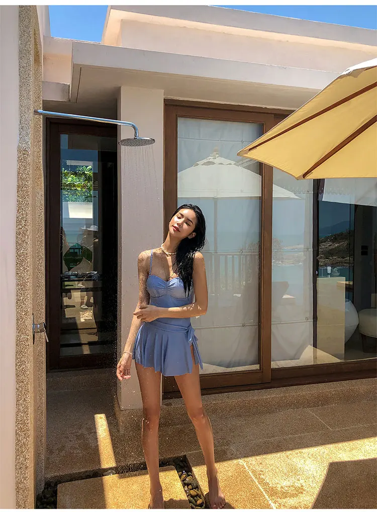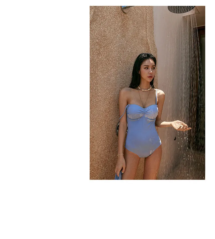 Слитный купальник в Корейском стиле, женский купальник с пуш-ап, высококачественный купальный костюм, сексуальное Монокини, пляжная одежда, новинка 2020, синий