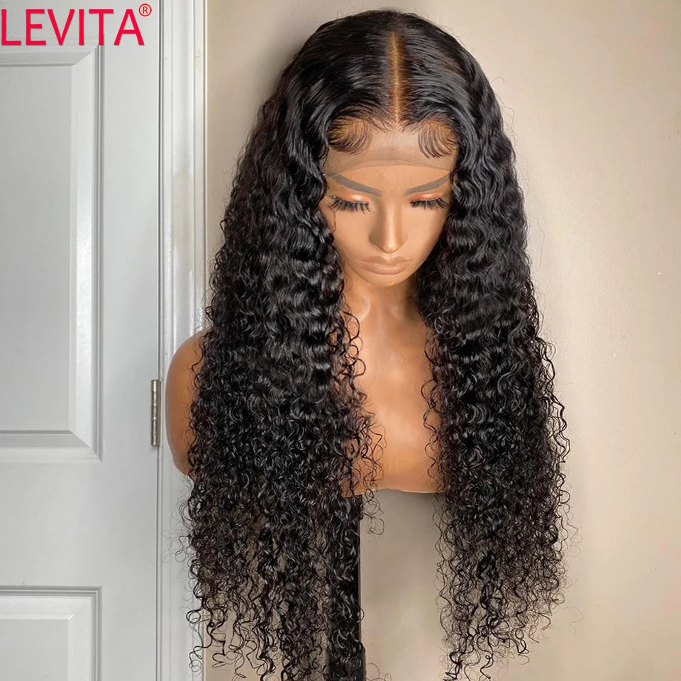 LEVITA афро кудрявые человеческие волосы парик 4 4 закрытие шнурка парик дешевые бразильские человеческие волосы парики для женщин non-remy 150% Плотность