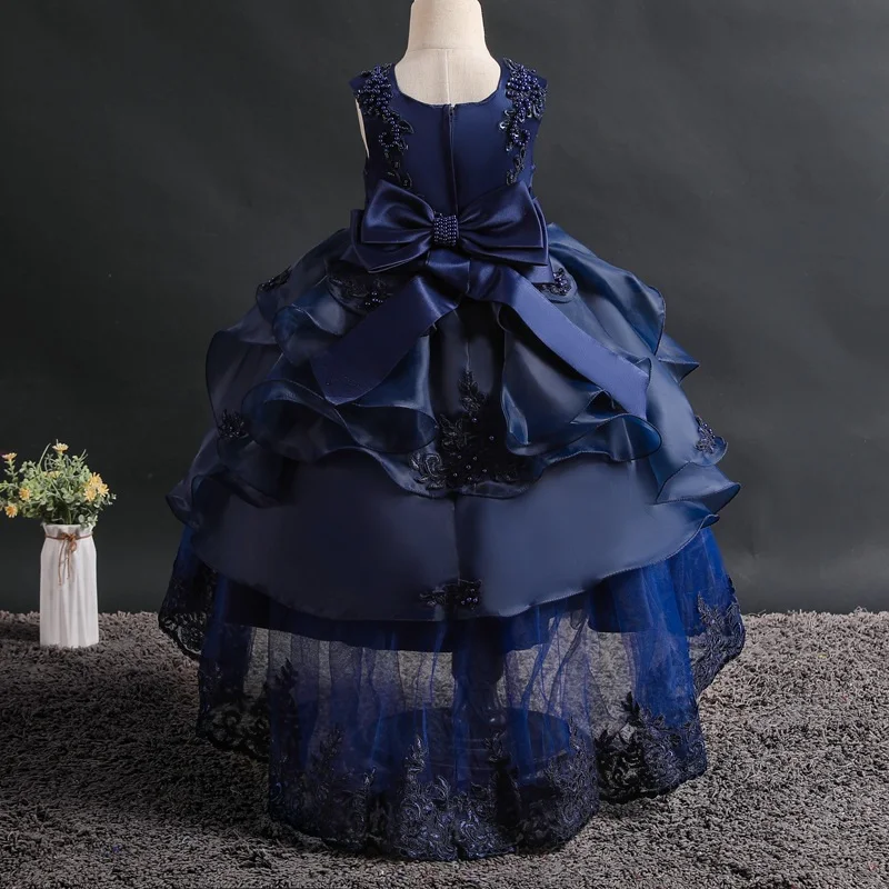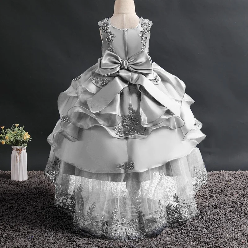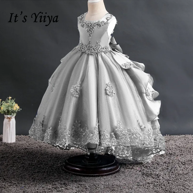 Серое платье с цветочным узором для девочек на свадьбу It's Yiiya B086, бальное платье принцессы с квадратным вырезом и аппликацией, платье для причастия с большим бантом