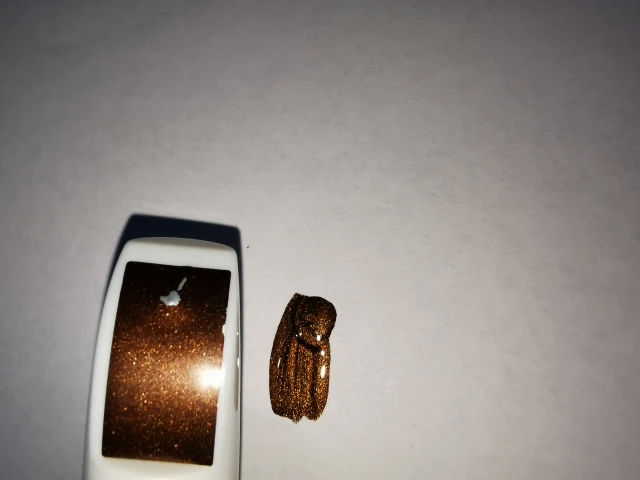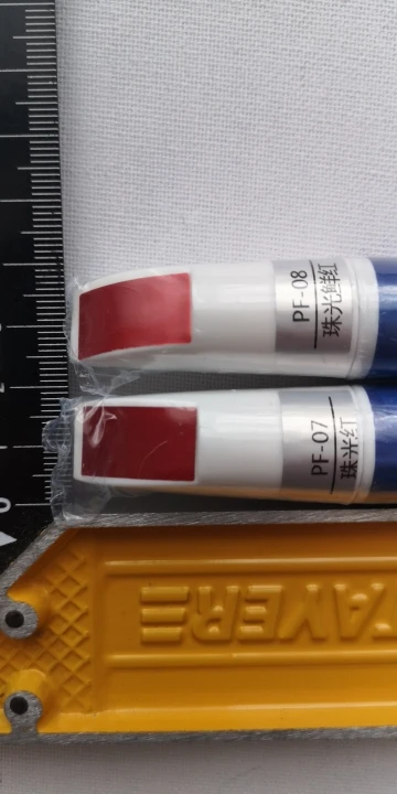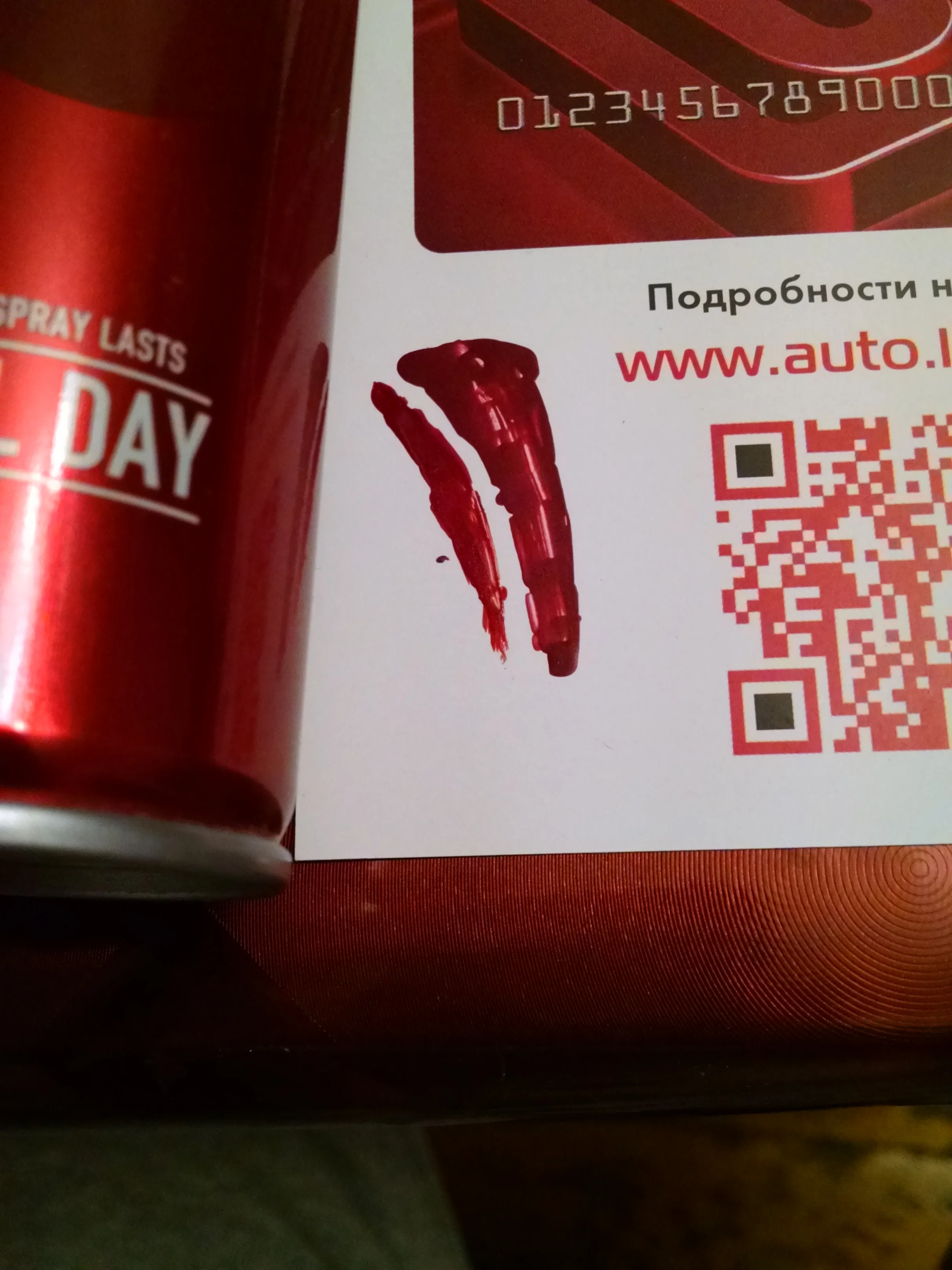 Доставка долгая - 2,5 месяца. Упаковано хорошо. Цвет (на фото слева) немного светлее чем R20 на моей машине Mitsubishi Pajero iO (справа), но очень похож. Перламутр (блезки) имеются ( на фото не видно). Флакон качественный, имеет кисточку и тонкий шарик для корекции мелких дефектов. В целом можно рекомендовать.