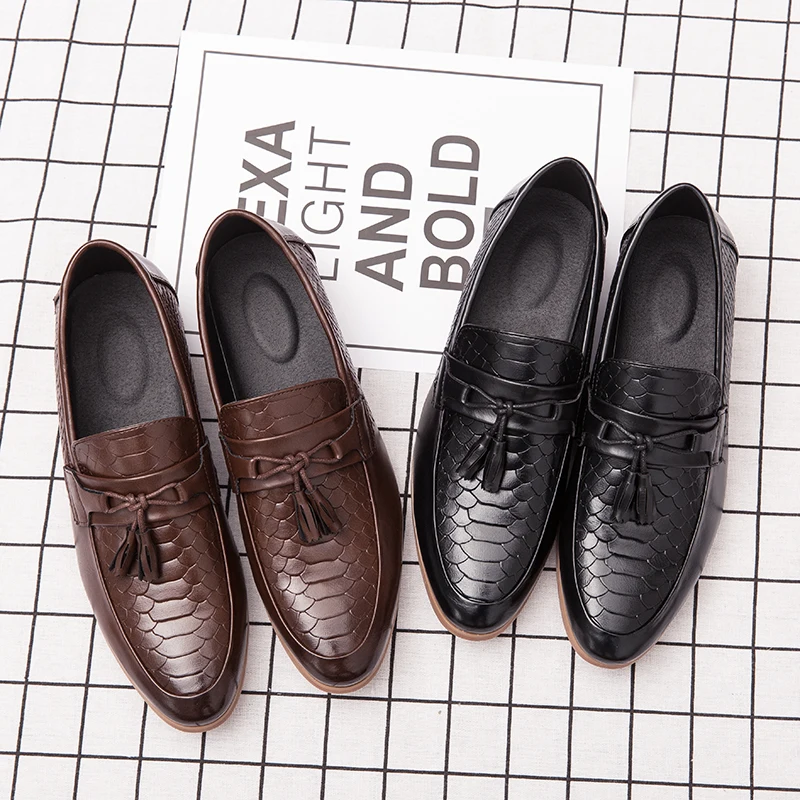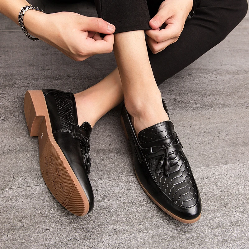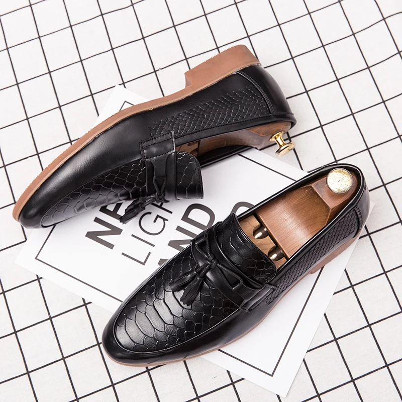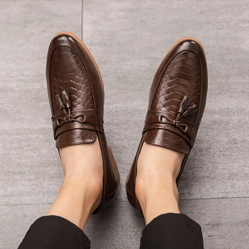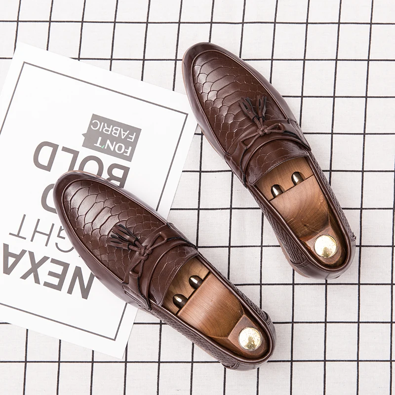 Мужская обувь; Лоферы; Классическая повседневная кожаная обувь; Мужская элегантная обувь с кисточками; Демисезонная нескользящая обувь с узором крокодиловая кожа