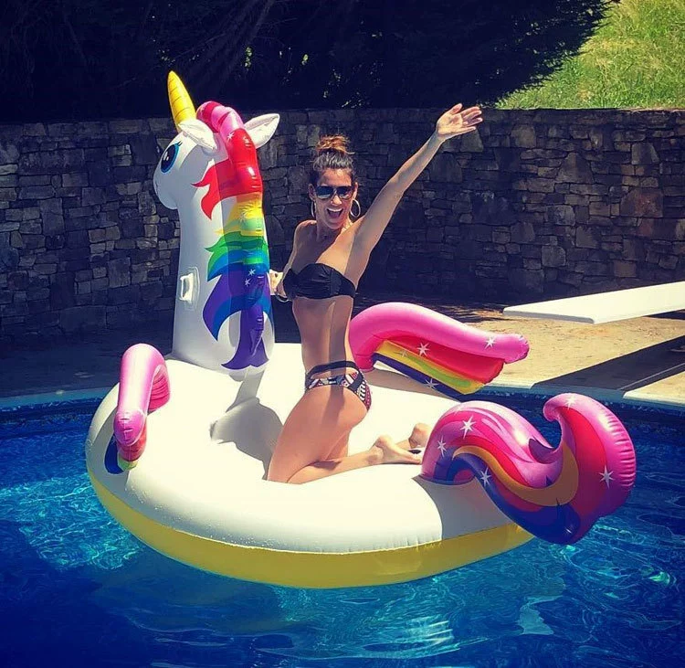 Feature 9Giant Inflatable Flamingo Unicorn Pool Floats with Flitters inside
