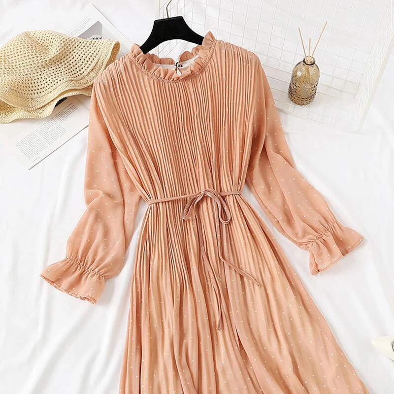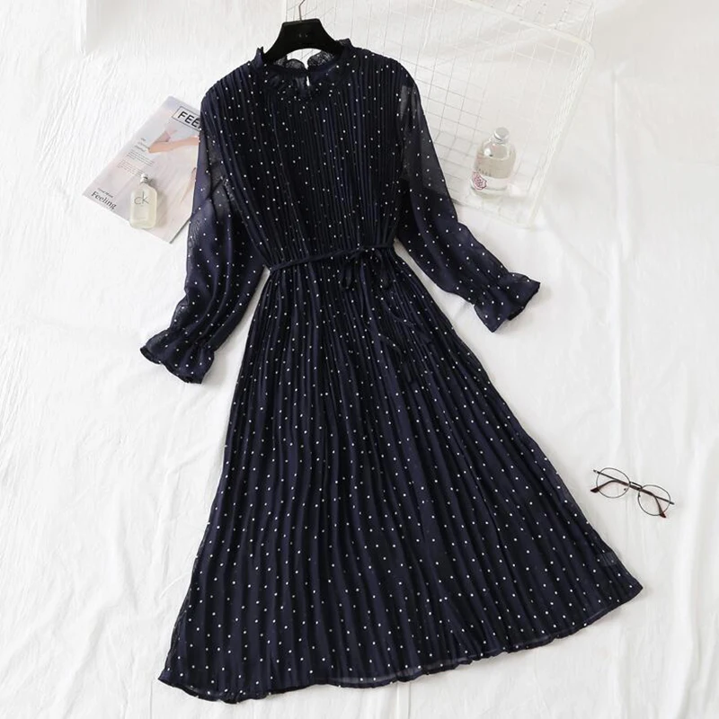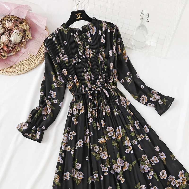 Женское шифоновое платье, Элегантное Длинное Повседневное платье с расклешенным рукавом и принтом, свободное Плиссированное Платье для офиса, весна-лето 2020