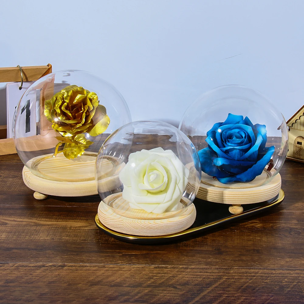 Сферическая стеклянная коробочка-колокол, стойка для дисплея, крышка для террариума, бутылка с деревянным основанием, акриловая Пылезащитная крышка, коробка для дисплея, Цветочная коробка
