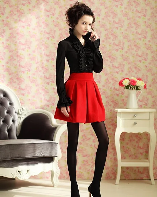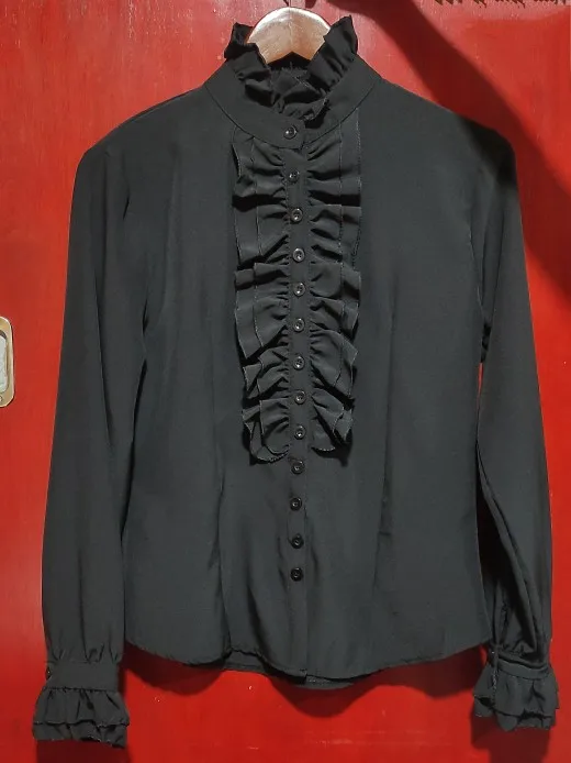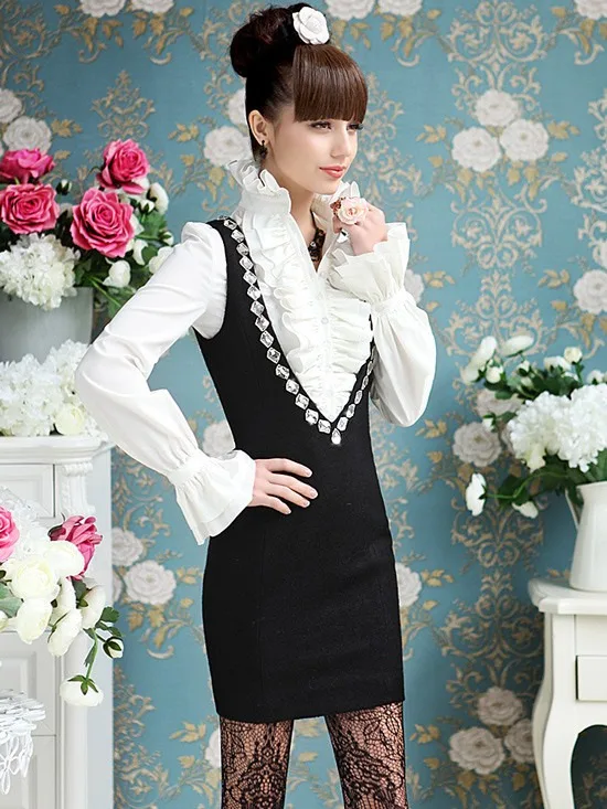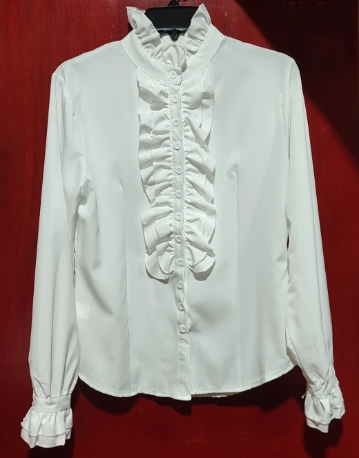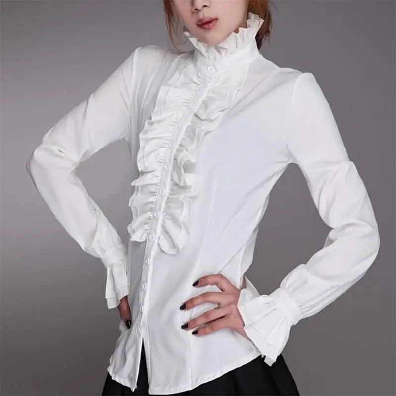 Женская Офисная рубашка, белая рубашка в викторианском стиле с высоким воротником и оборками на манжетах, осенняя блузка