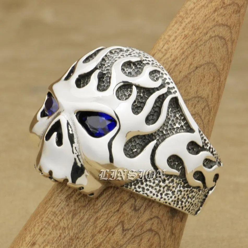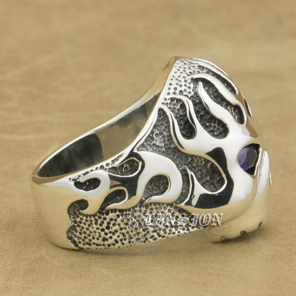 925 пробы серебряные огромные тяжелые кубические глаза огненный череп мужское байкерское кольцо в стиле панк 8D306 американский размер 7 15