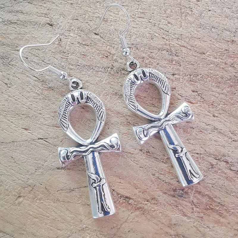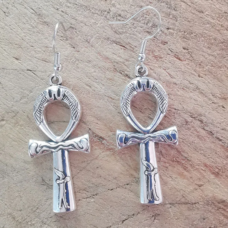 Винтажные серебряные серьги-подвески Ankh Cross, женские подарочные серьги, модные ювелирные изделия, Goth Punk kolczyki brincos aretes de mujer bijoux, Новинка